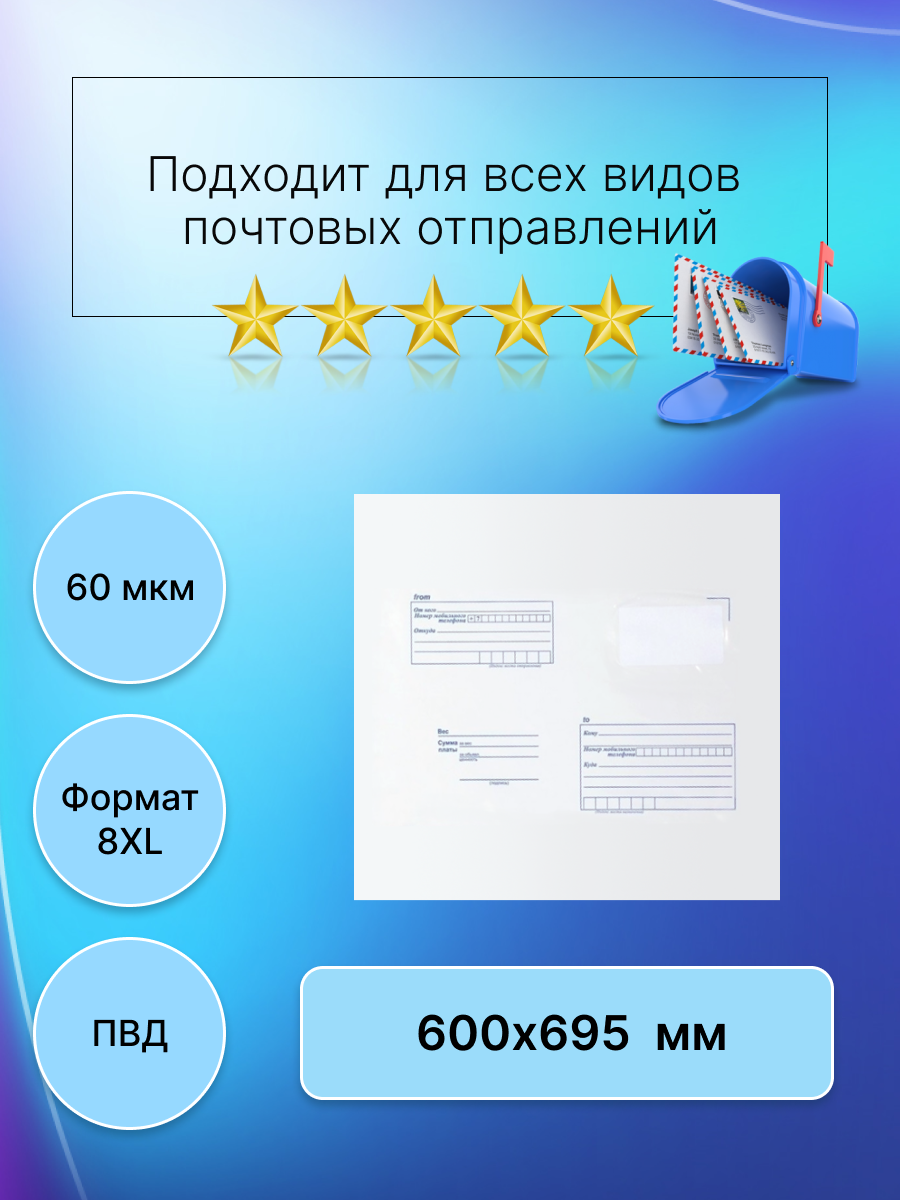 Пакет почтовый "Почта России" 600х695 мм., с этикеткой, 60 мкм., 5 штук интересное: