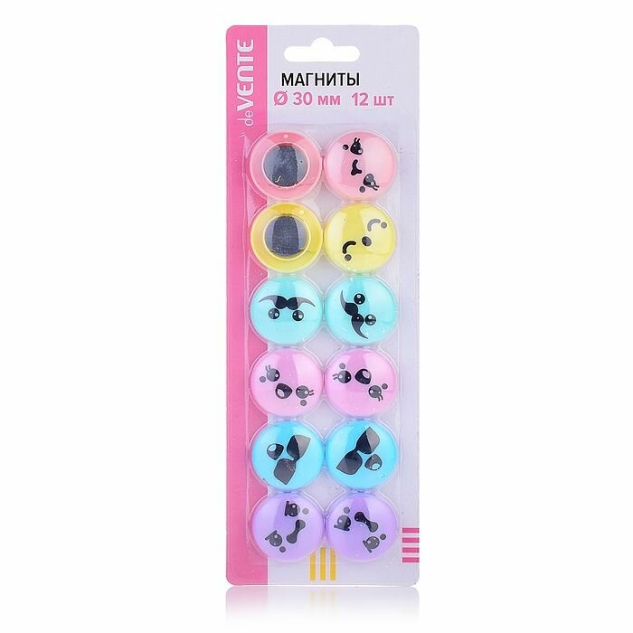 Магниты для досок deVENTE "Smile", для офисной, диаметр 30 мм, ассорти в пастельных цветах, 12 шт интересное: