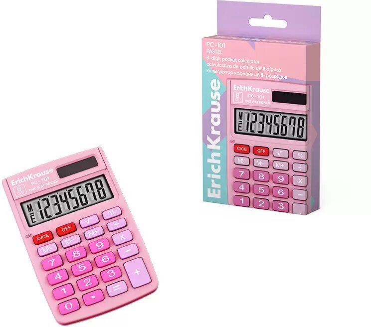 Калькулятор карманный ERICH KRAUSE PC-101 Pastel 8 разрядов, розовый интересное: