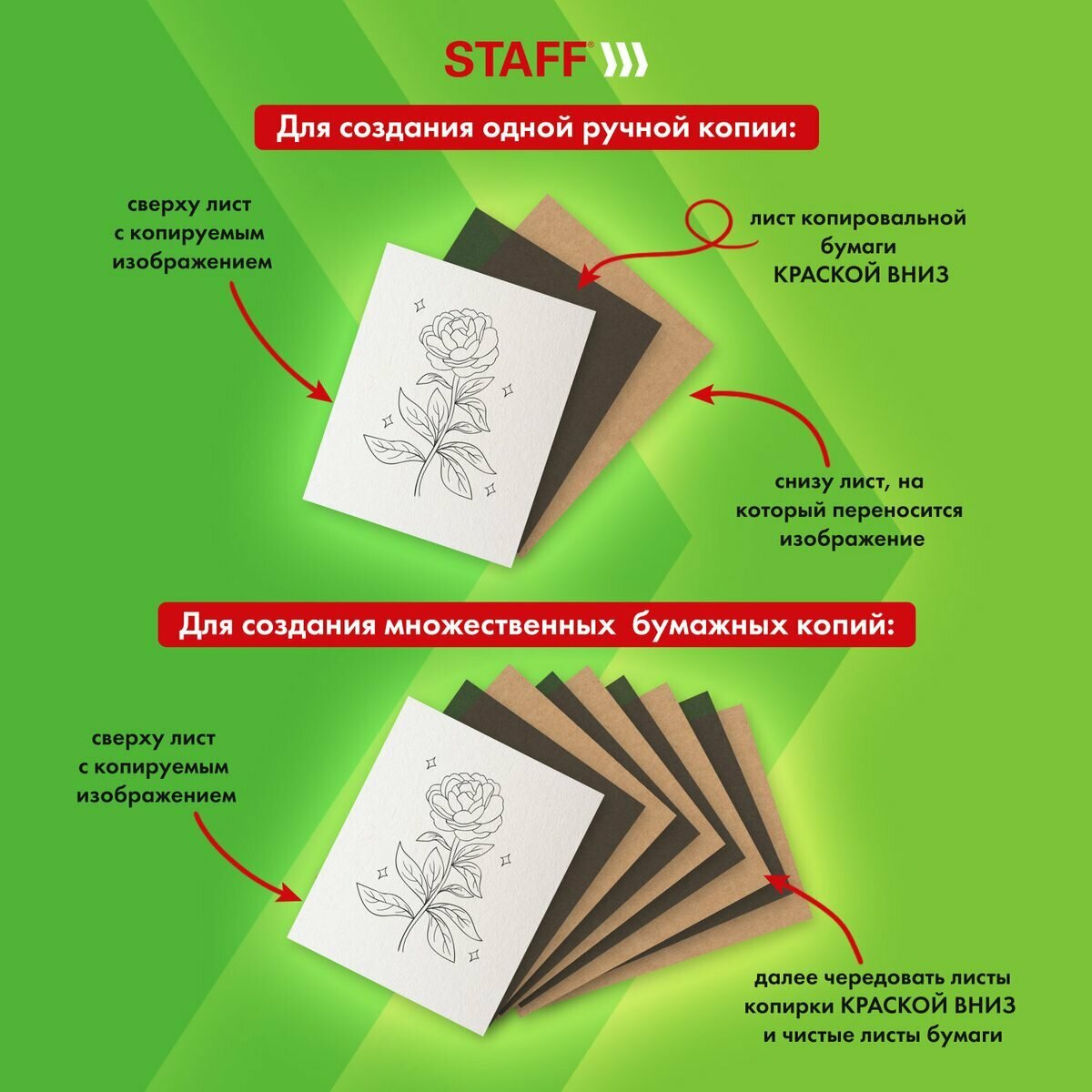 Бумага копировальная Staff, формат А4, черная, пачка 100л. (112408), 2 уп. интересное: