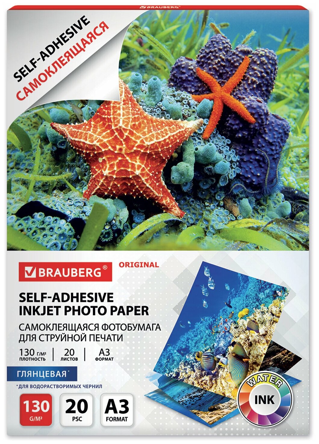 Фотобумага самоклеящаяся глянцевая / бумага для печати фото на струйных принтерах, А3, 130 г/м2, 20 листов, Brauberg Original, 364008 интересное: