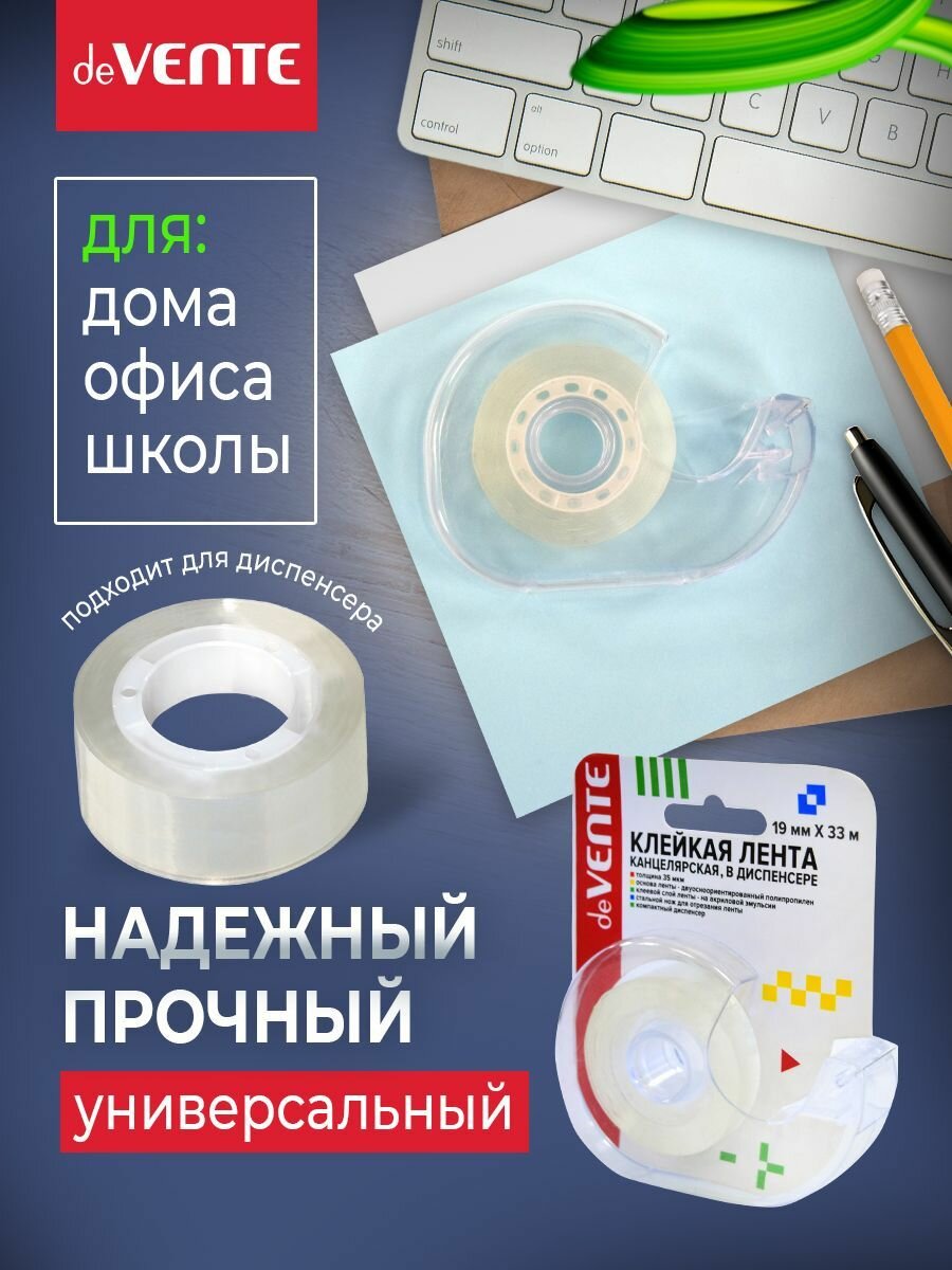 Скотч deVENTE 19 мм, 33 м прозрачный 35 мкм, в пластик, диспенсере (4162109) интересное: