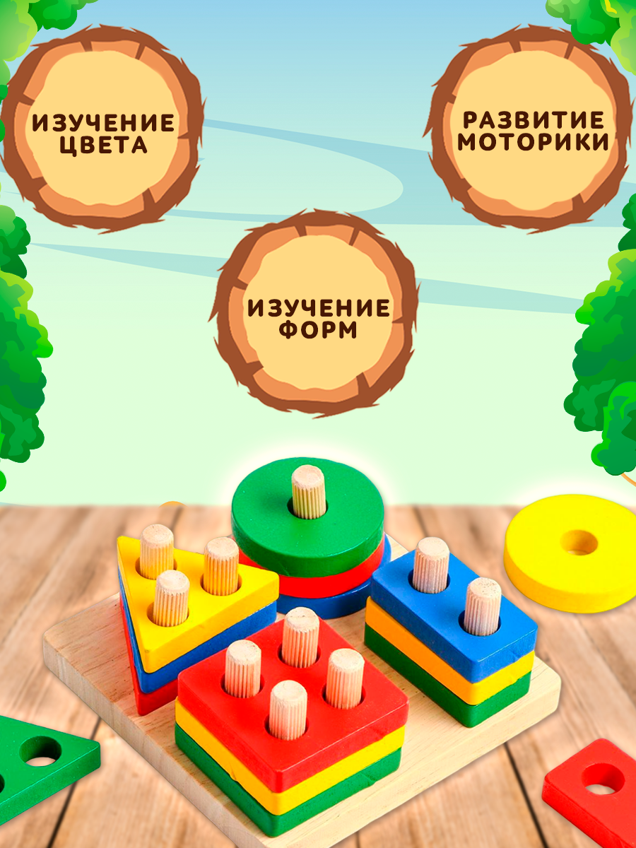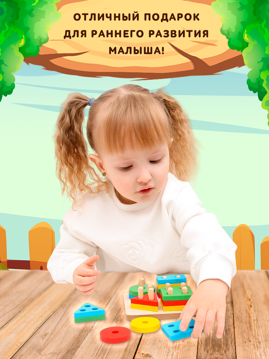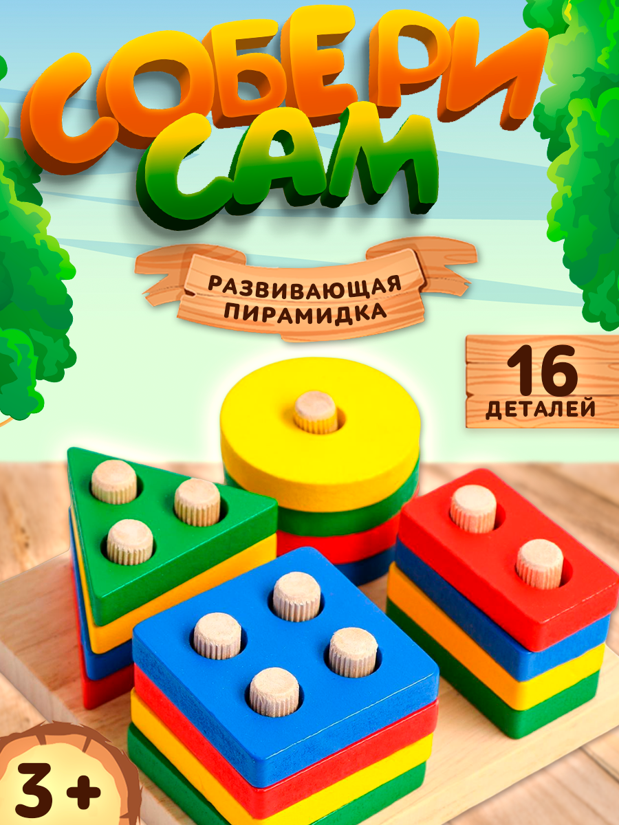 Детская развивающая пирамидка "Собери сам" 11,5х11,5 см, 16 деталей, ЛАС играс интересное: