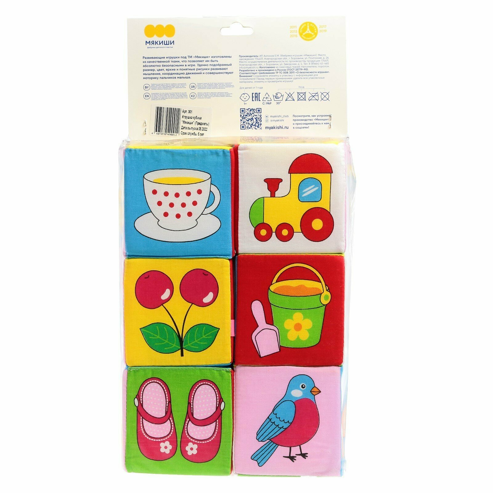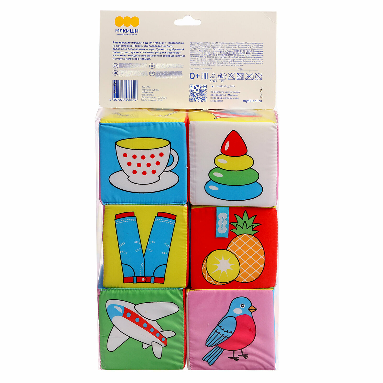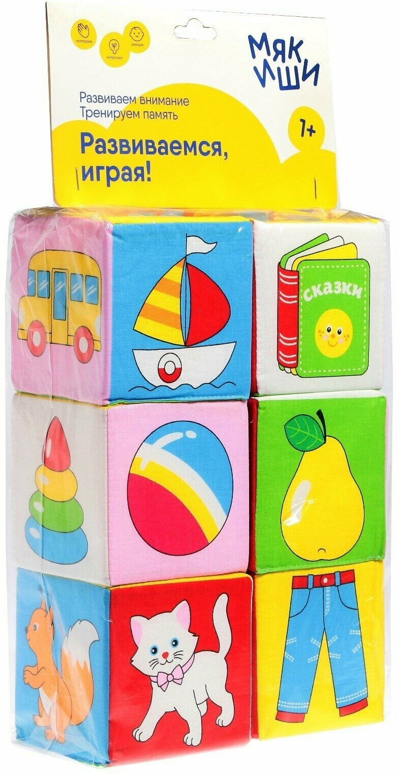Кубики Мякиши Предметы 6 кубиков по 10 см, 20(ш)х43(в)х10(г) см 001м