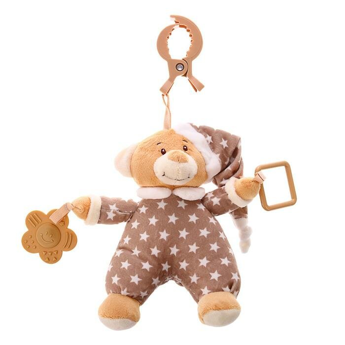 Купить Подвеска мягкая "Зайка в пижаме" грызунок, детская подвесная игрушка для коляски/кроватки, развитие тактильных ощущений и зрительного восприятия, нежные цвета