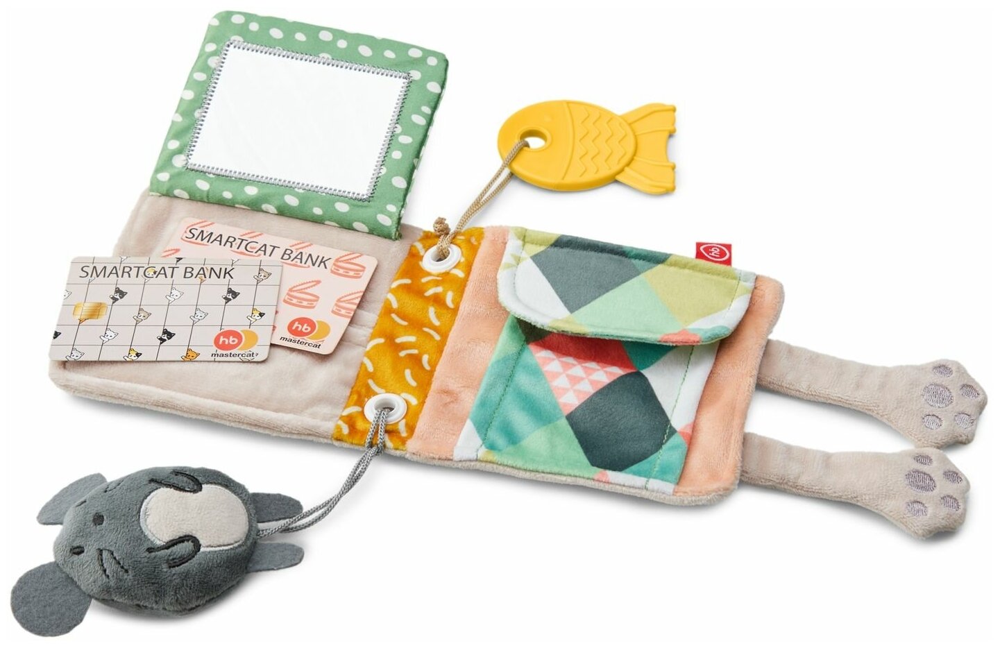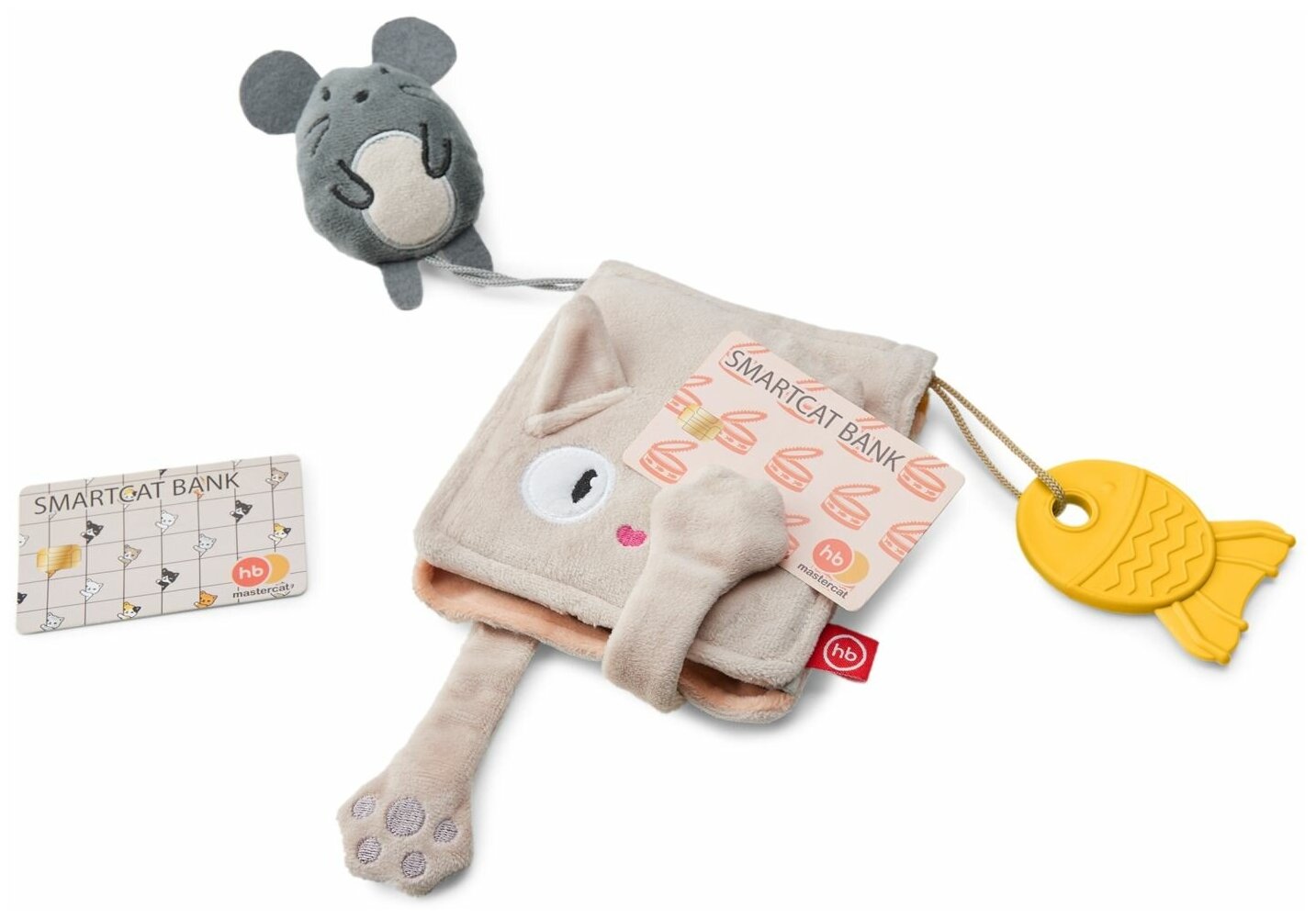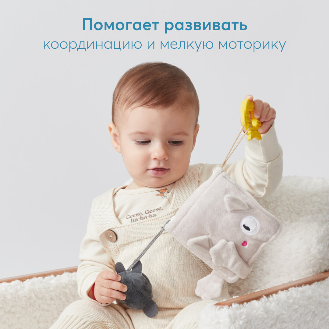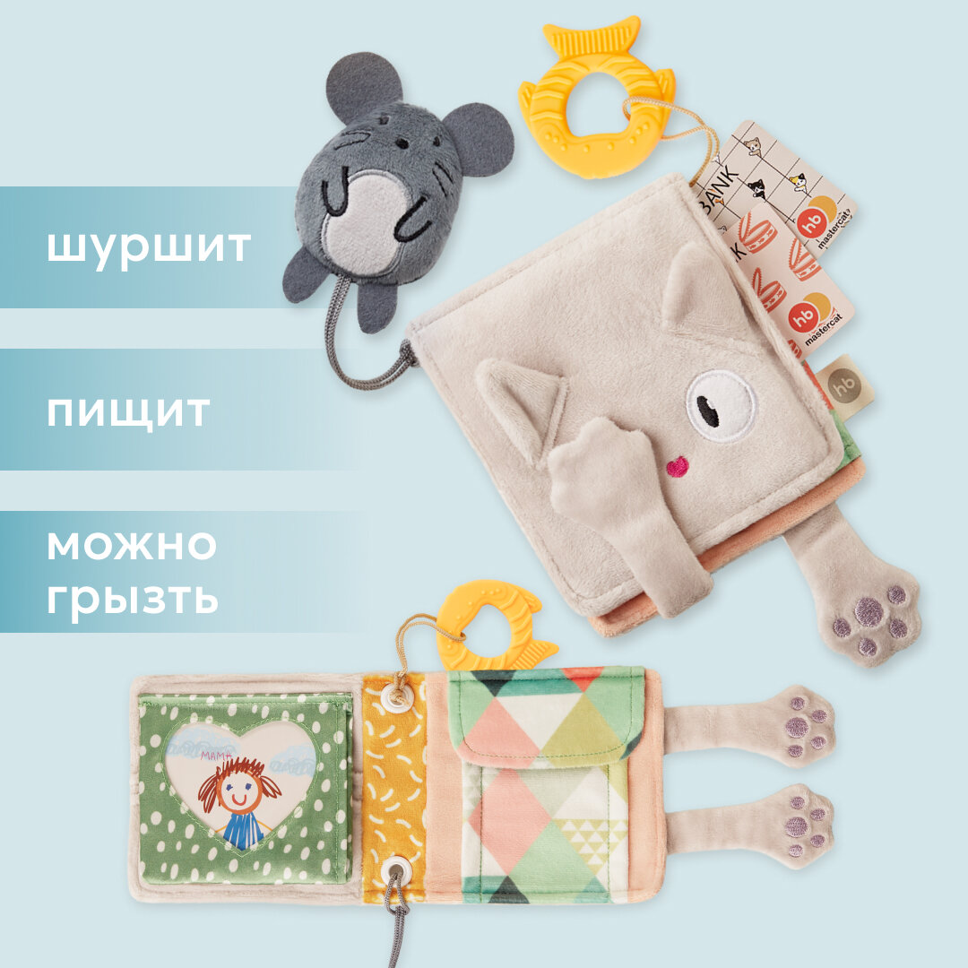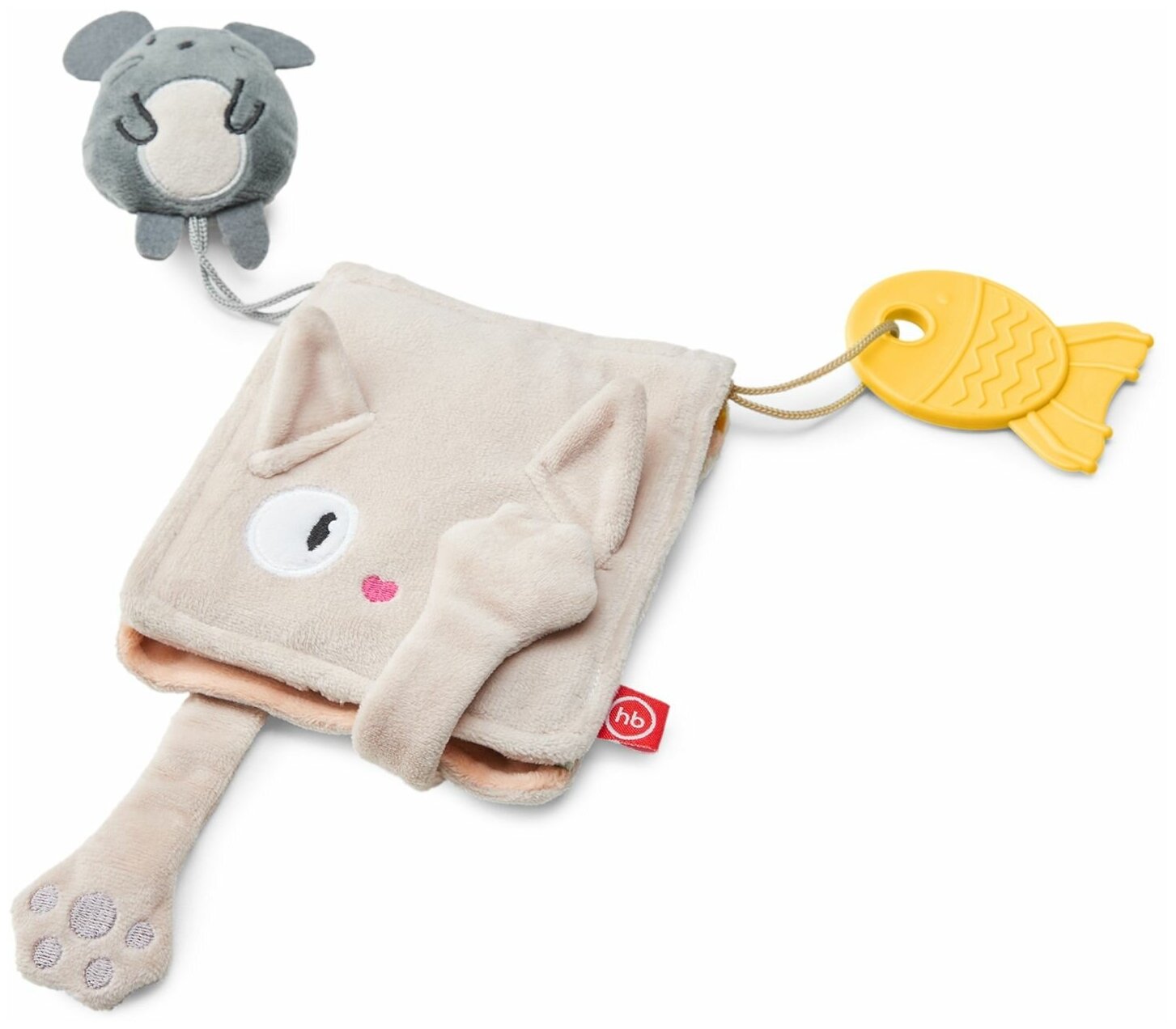 330718, Развивающая игрушка шуршалка Happy Baby котик для девочек и мальчиков, грызунок прорезыватель, с пищалкой, серый интересное: