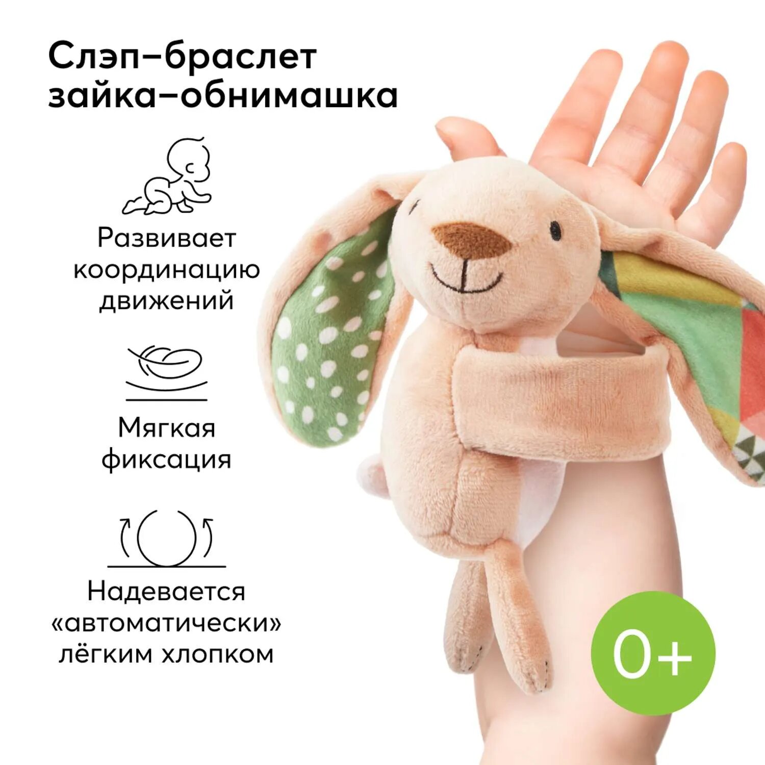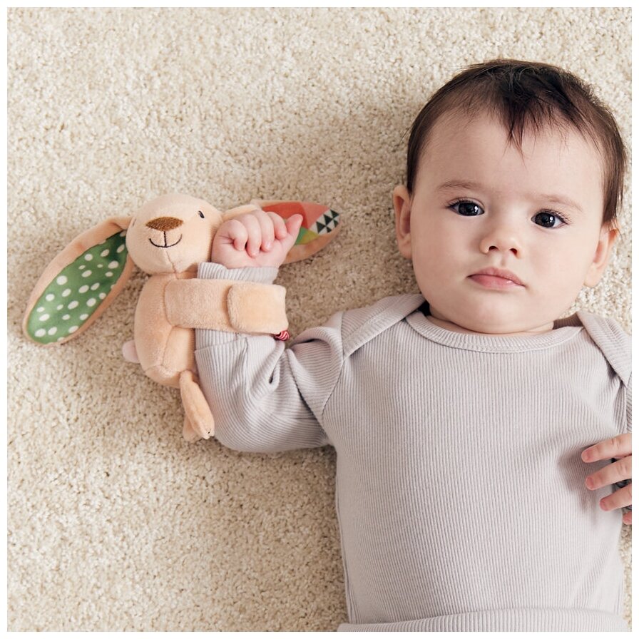 330717, Браслет-погремушка на руку для малышей Happy Baby, игрушка для новорожденных, персиковый зайка