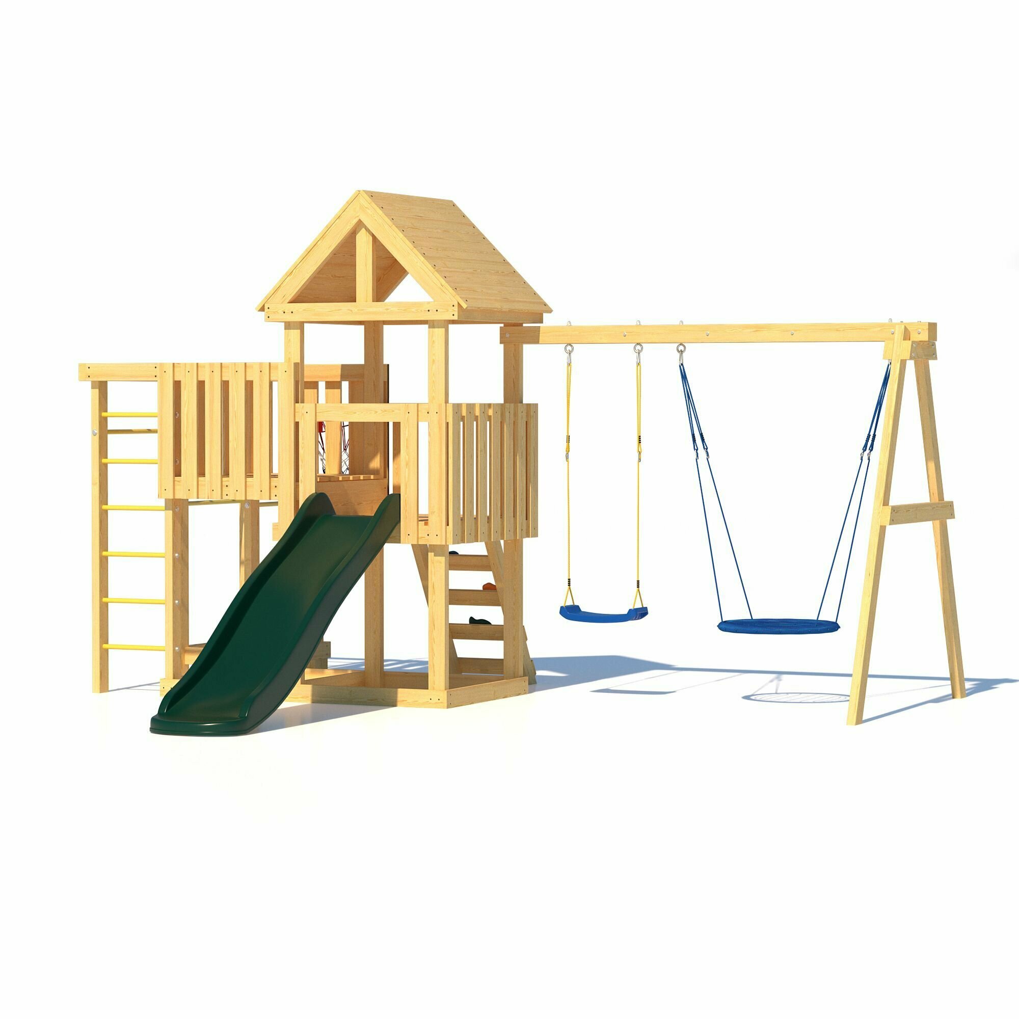 | В комплекте | баскетбольное кольцо, брусья, домик, качели, лестница, рукоход, скалолазная стенка, турник |