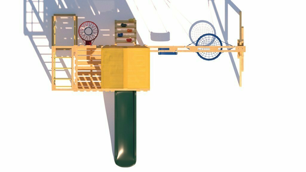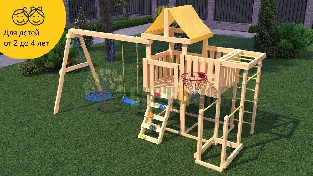 | В комплекте | баскетбольное кольцо, брусья, домик, качели, лестница, рукоход, скалолазная стенка, турник |
