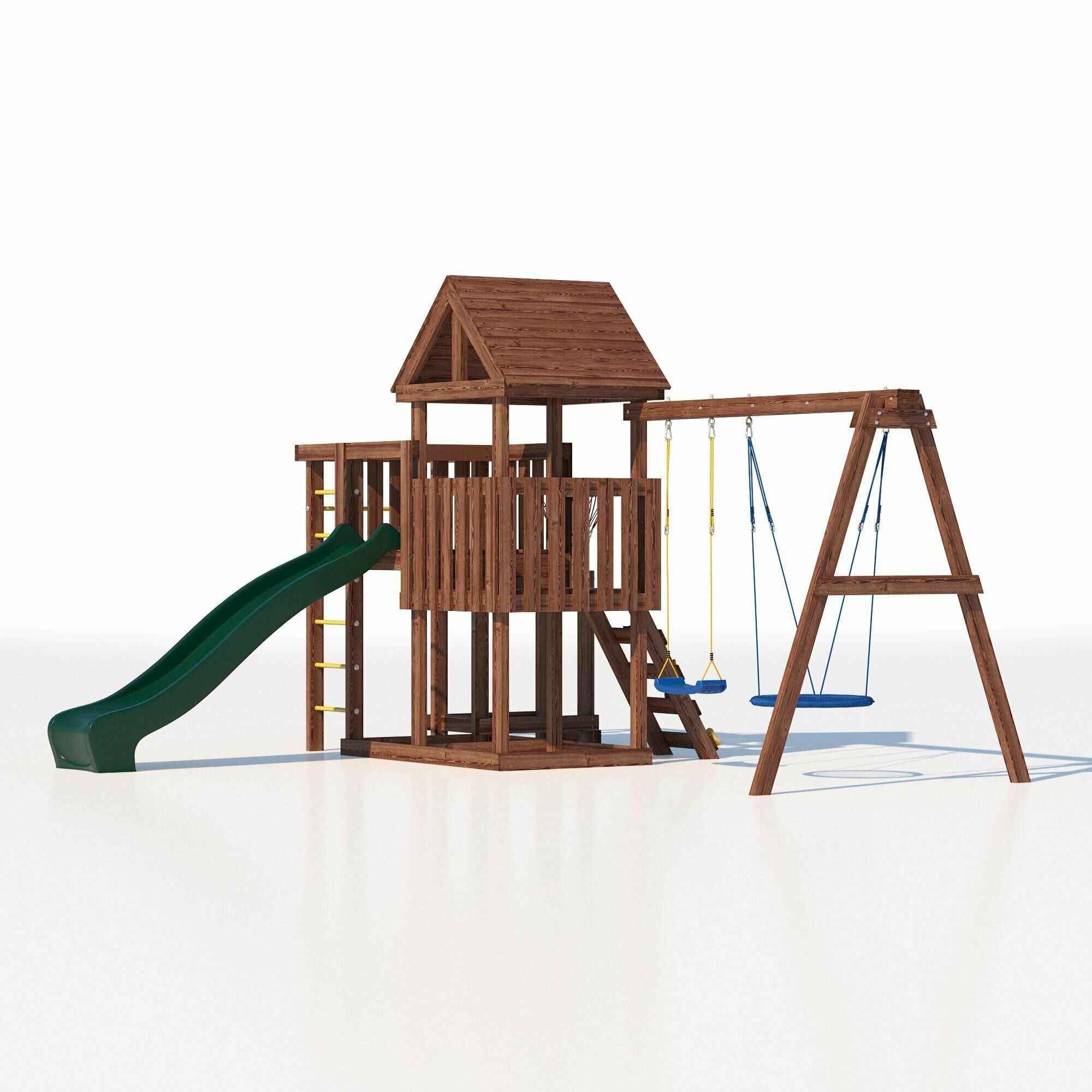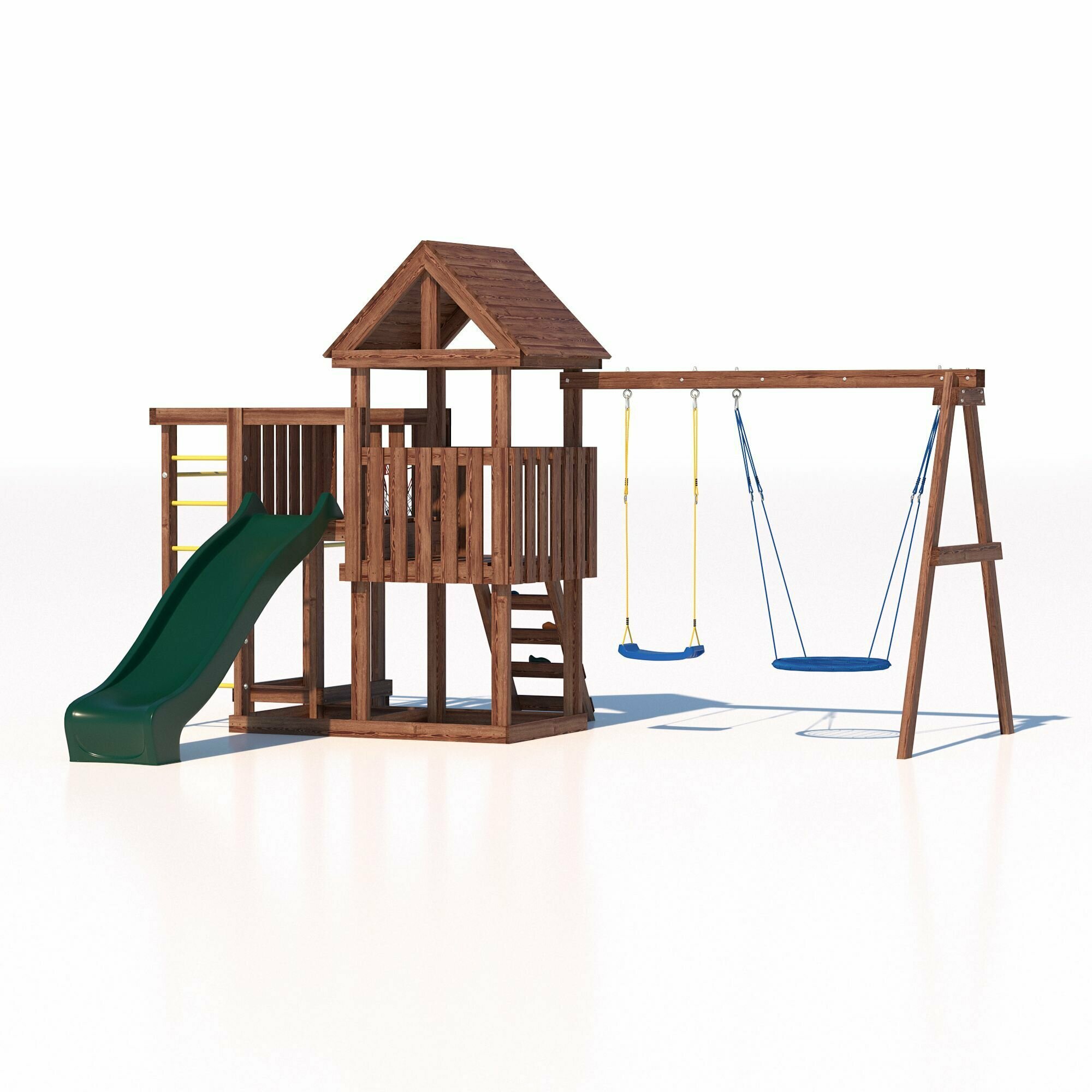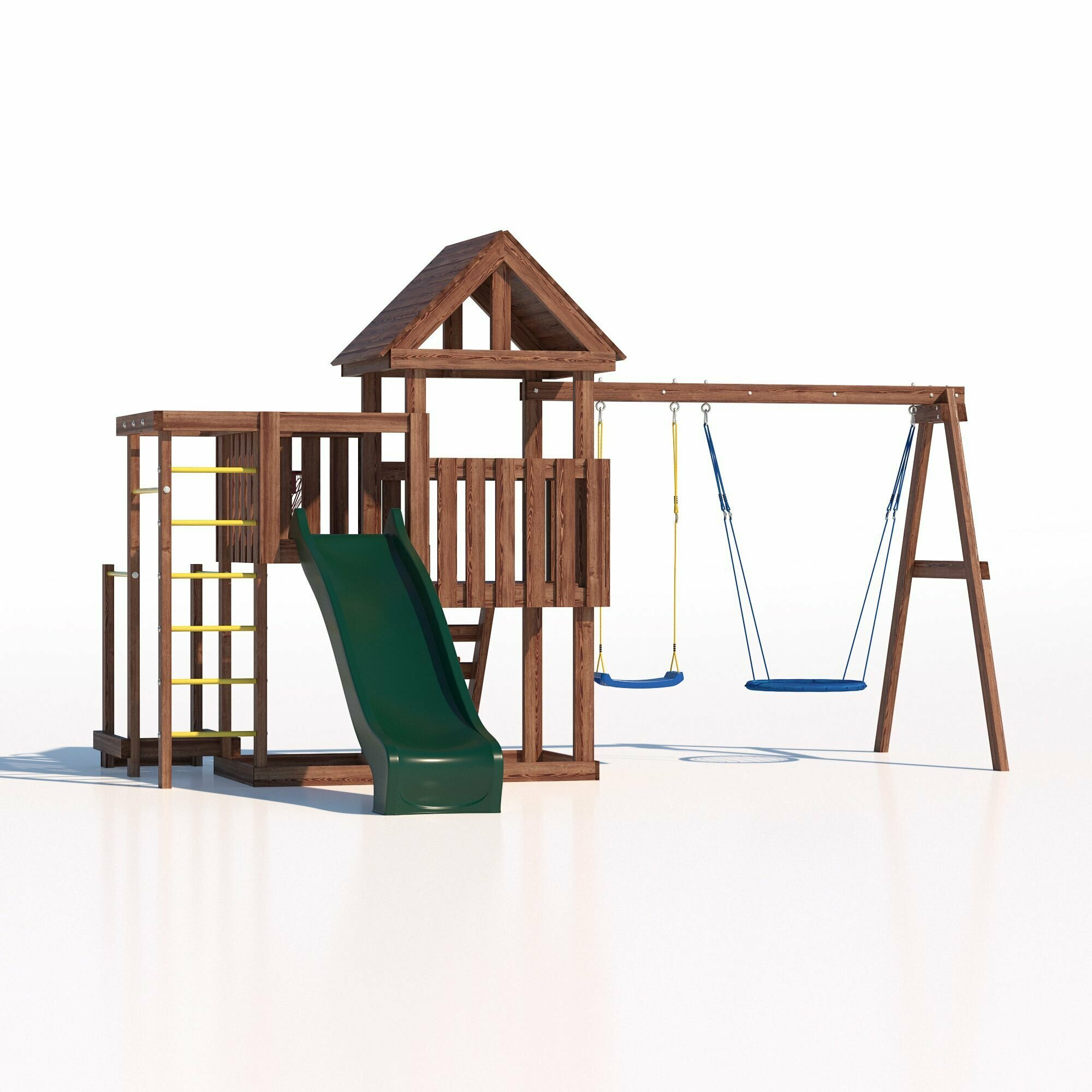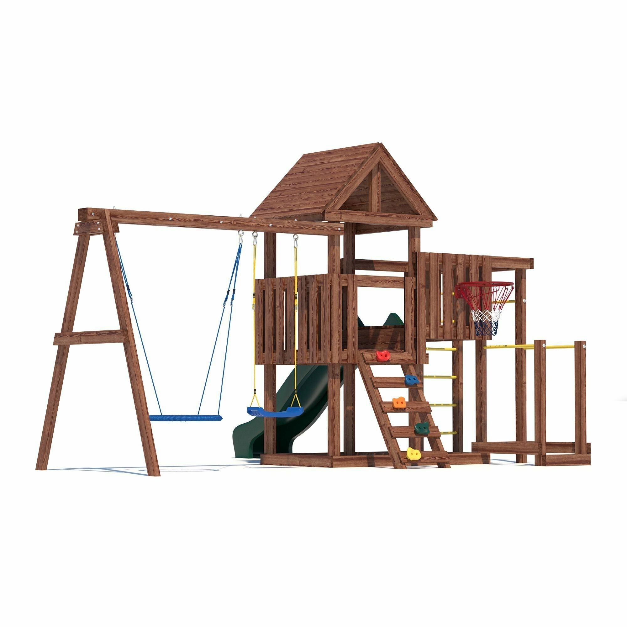 | В комплекте | баскетбольное кольцо, брусья, домик, качели, лестница, рукоход, скалолазная стенка, турник |