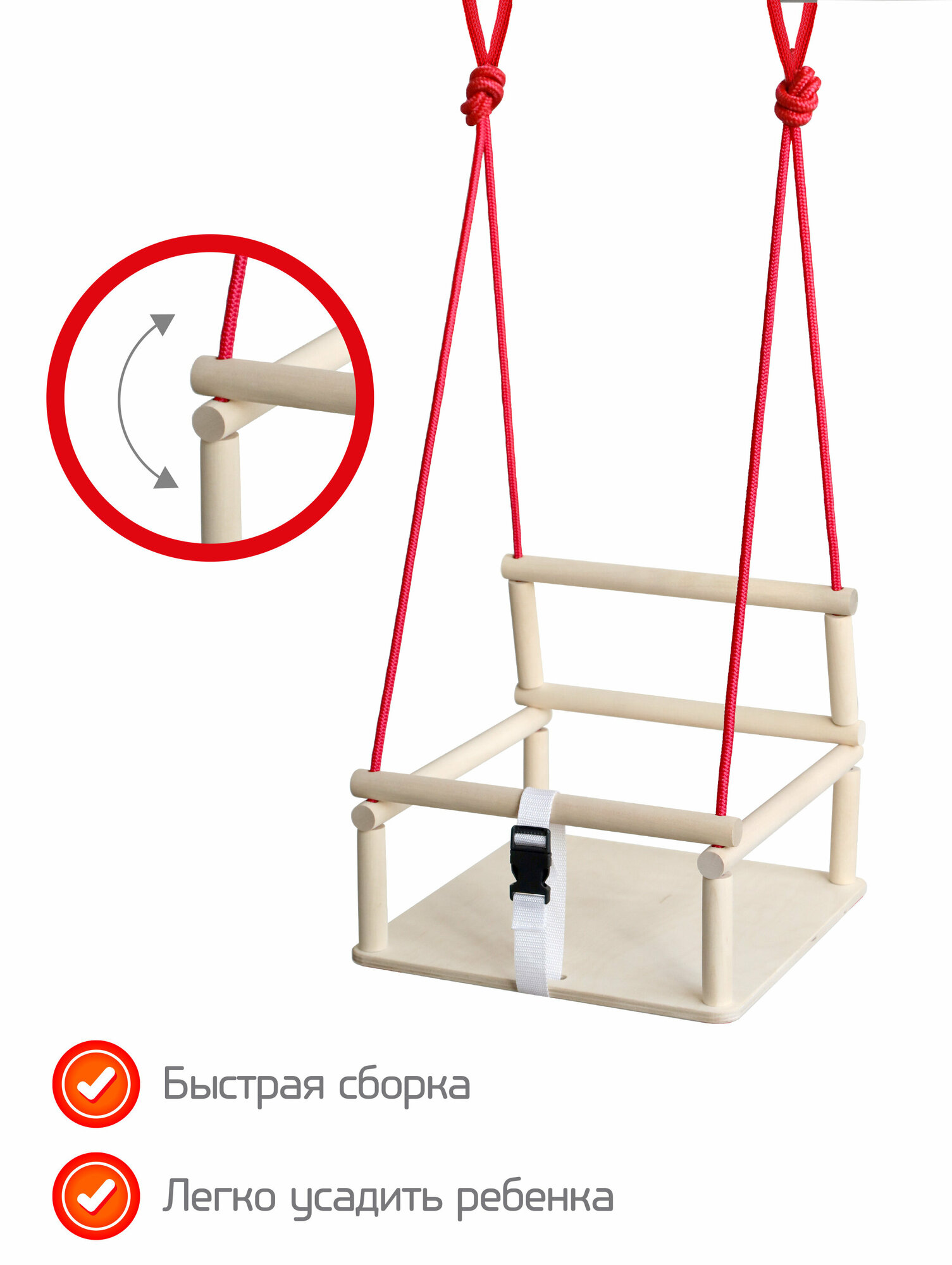Подвесные деревянные Качели Moby Kids Полет-3 с ремнем для страховки 962505 интересное: