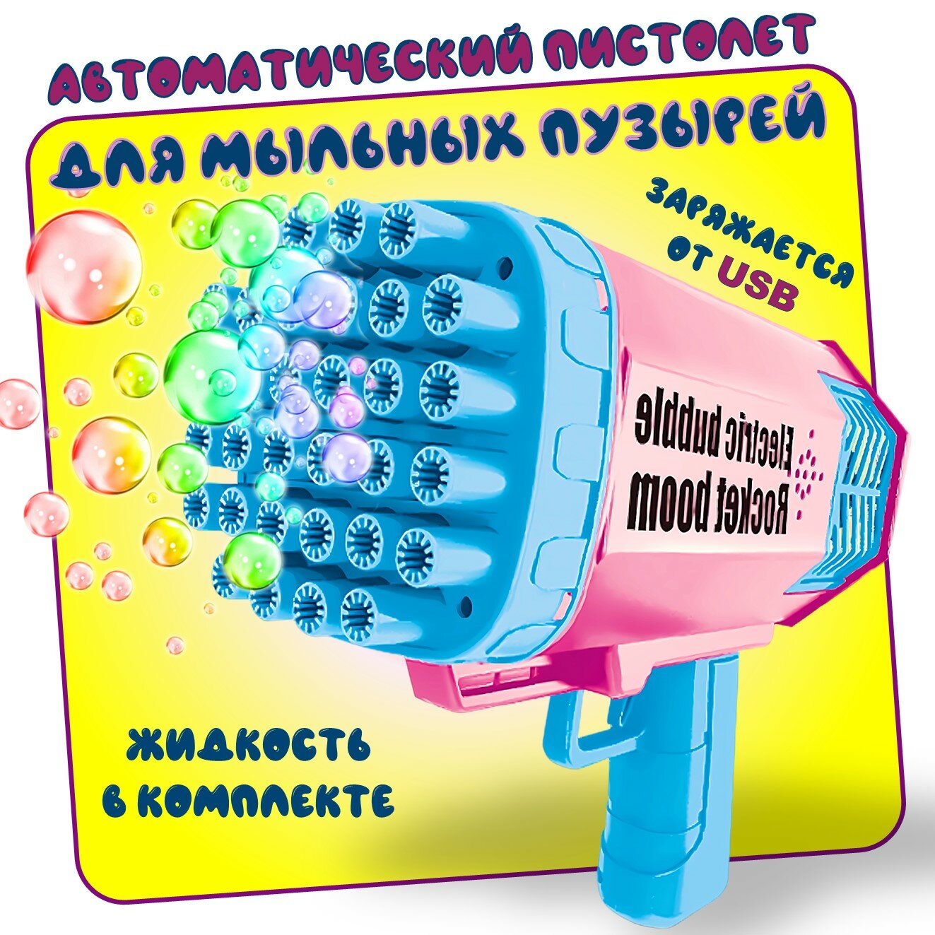 Пистолет для мыльных пузырей, с подсветкой и USB зарядкой. Генератор мыльных пузырей. Мыльный пистолет