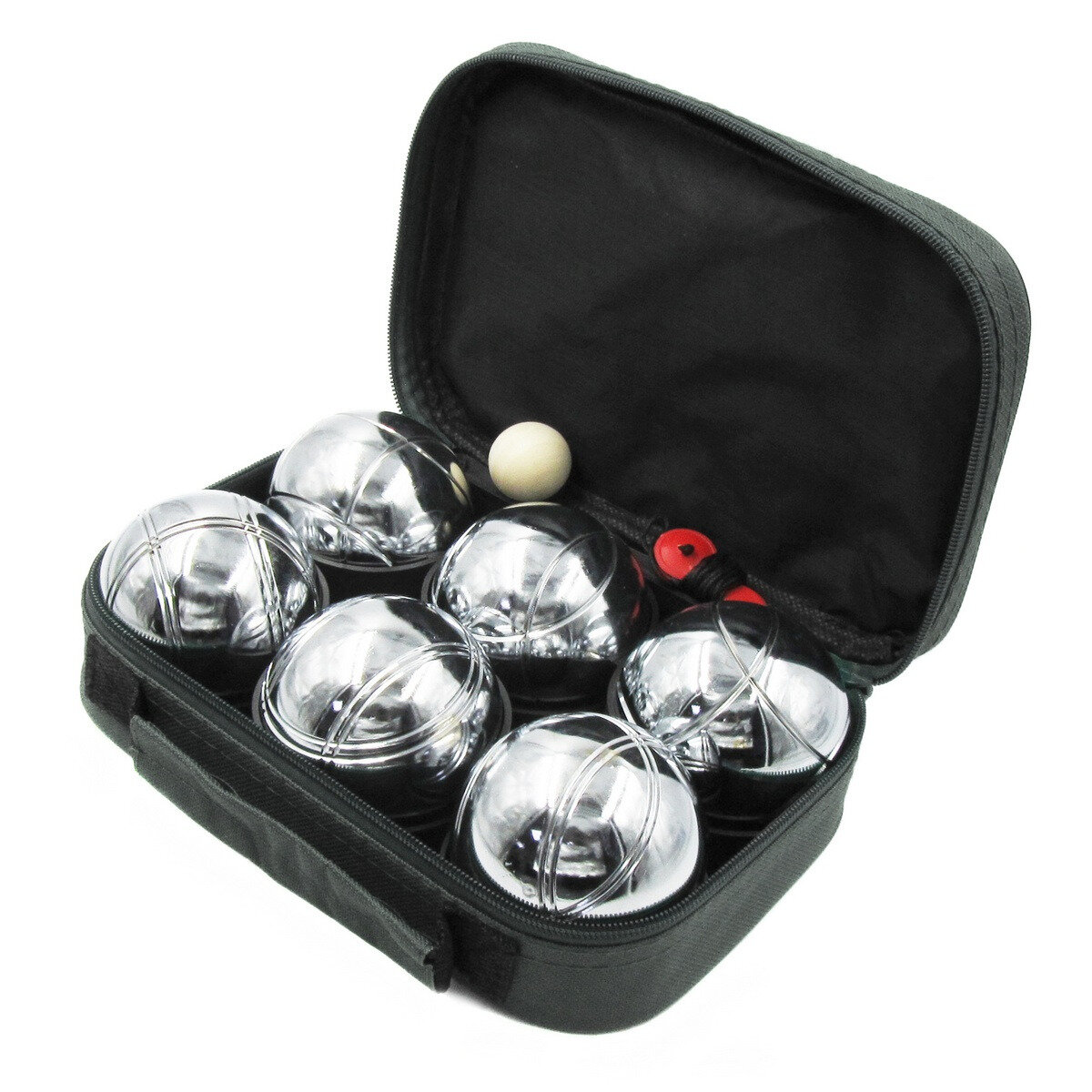 | В комплекте | 6 больших шаров для бросков, 1 маленький шар-мишень «кошонет», мерная веревка с колышком для очерчивания круга, футляр для хранения и переноски, брошюра с правилами игры |