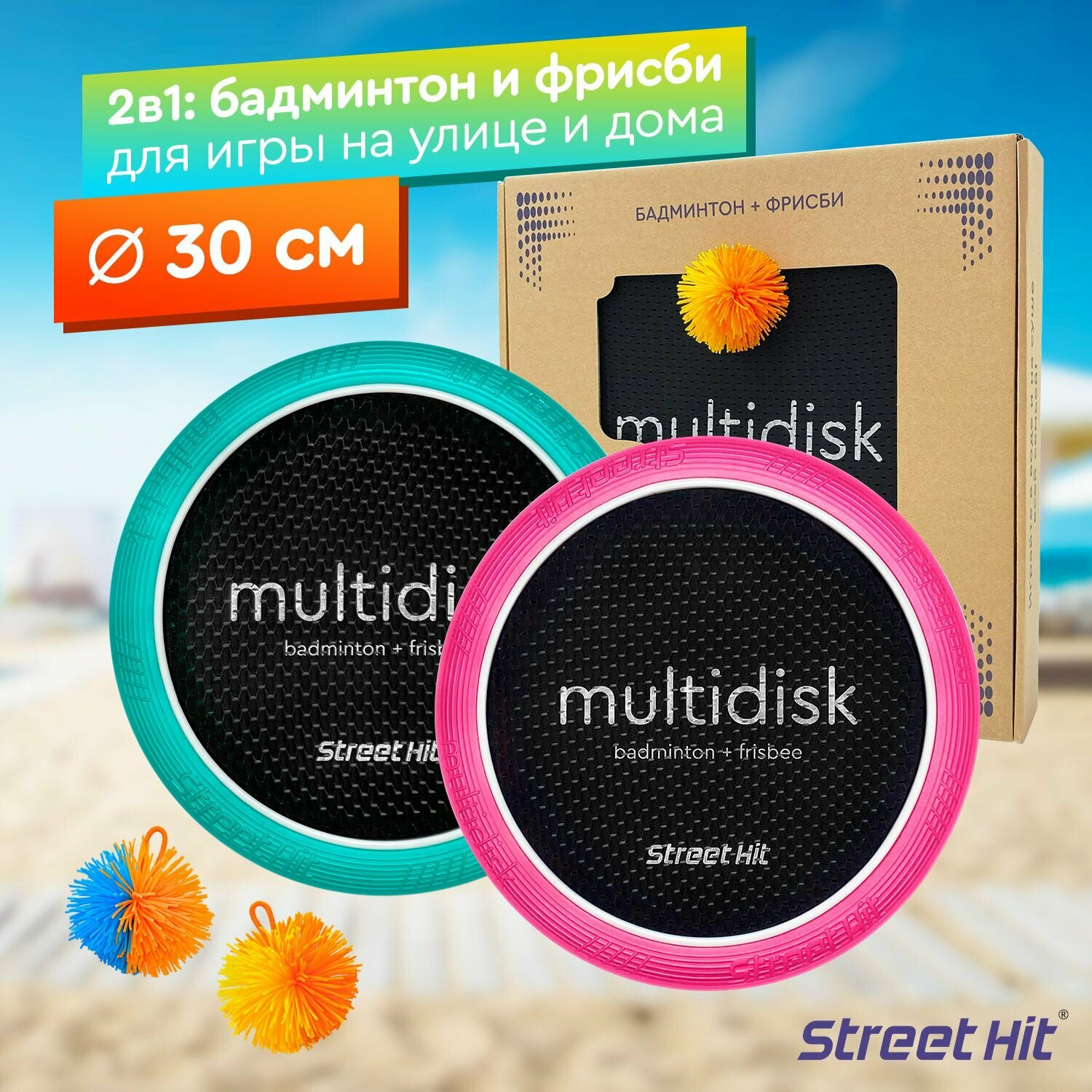 Игра Мультидиск "Street Hit" Крафт Mini (Бадминтон+Фрисби), 30 см, оранжево-голубой