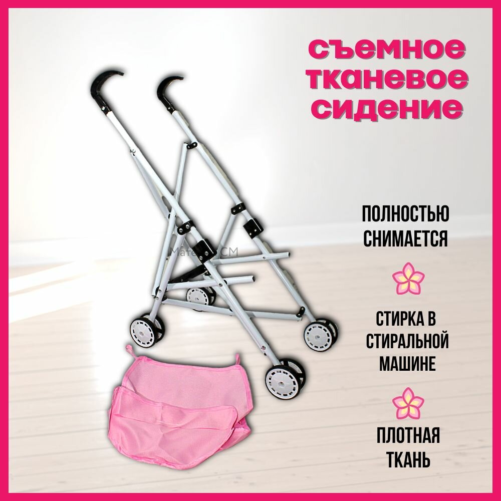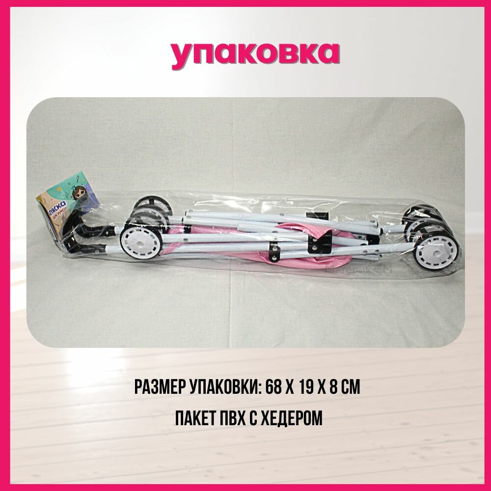 Кукольная коляска трость для кукол 3+, прогулочная, розовая, складная, металлическая, 4 колеса, до 50см интересное: