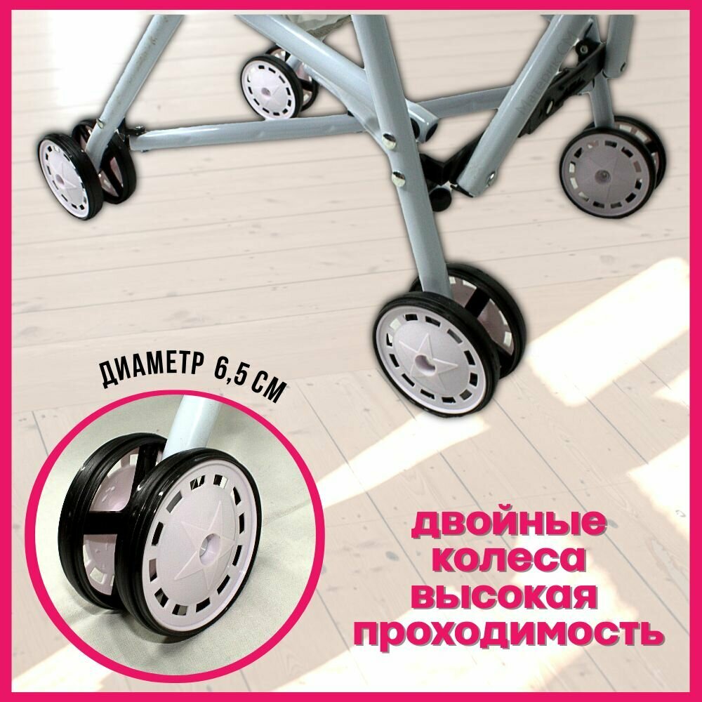 Коляска-трость игрушечная для кукол до 50 см, металлическая складная кукольная коляска Miss Kapriz для девочек 3+ розовая