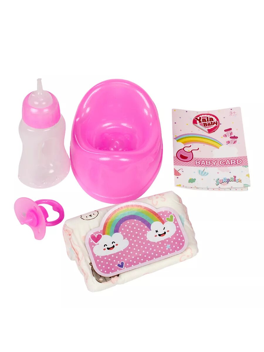 Пупс кукла 30 см с бутылочкой пустышкой, глаза закрываются, одежда снимается, 7 предметов / 1 шт