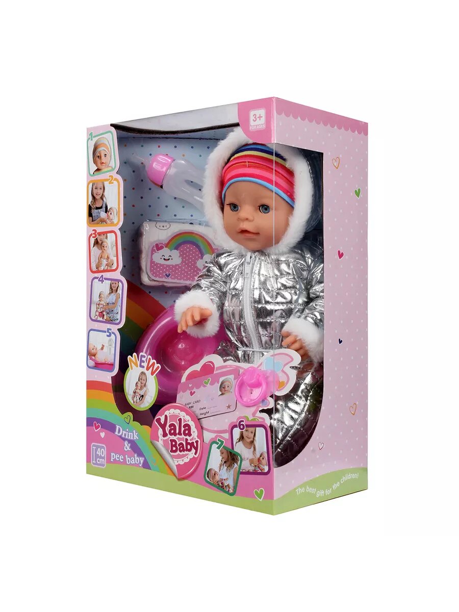 СохранитьПупс кукла 40 см с бутылочкой пустышкой, глаза закрываются, одежда снимается, 6 предметов / 1 шт интересное: