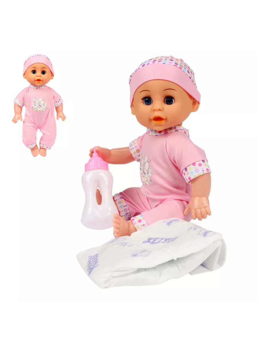 Купить Пупс кукла девочка 35 см с бутылочкой и аксессуаром, 3 предмета, розовый костюм /1 шт