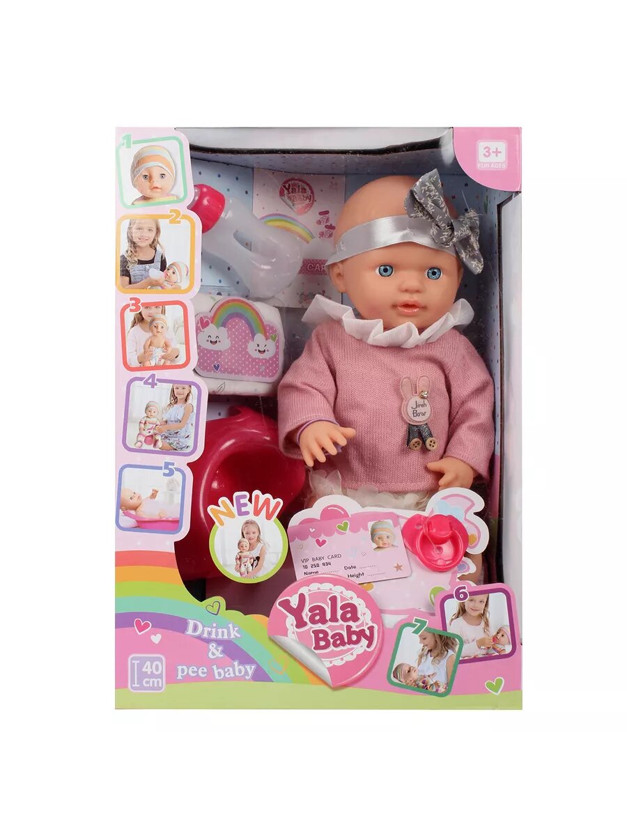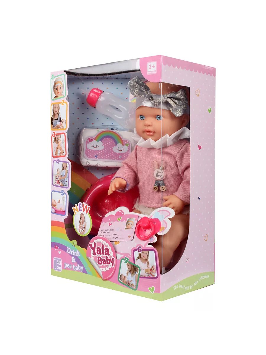 Купить Пупс кукла для девочек 40 см с бутылочкой пустышкой, глаза закрываются, одежда снимается, 5 предметов / 1 шт