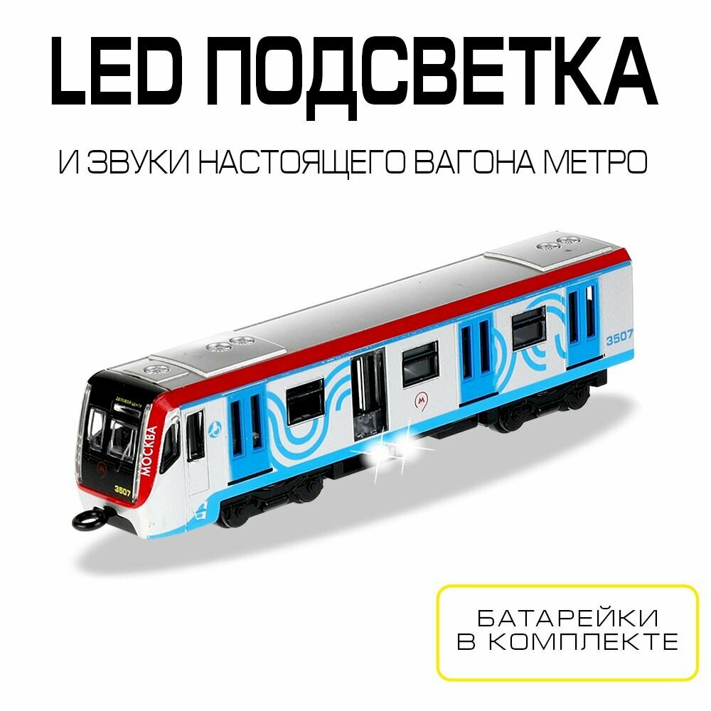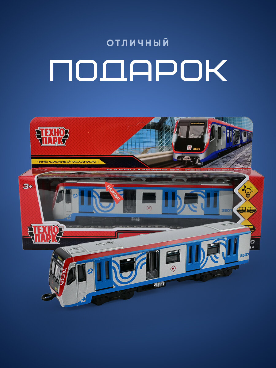 Машинка игрушка детская для мальчика Технопарк металлическая световые и звуковые эффекты вагон метро 18,5 см