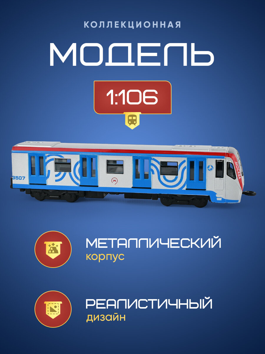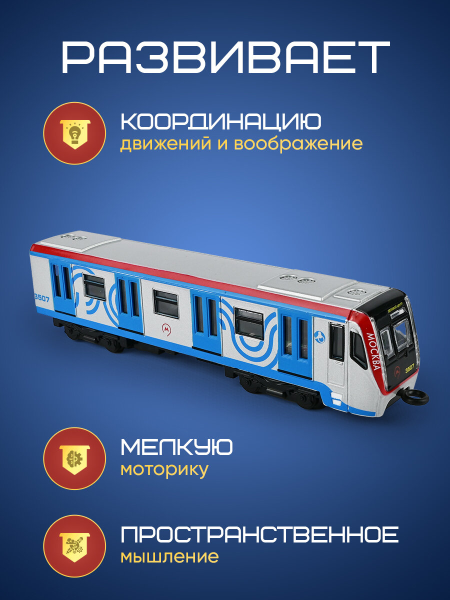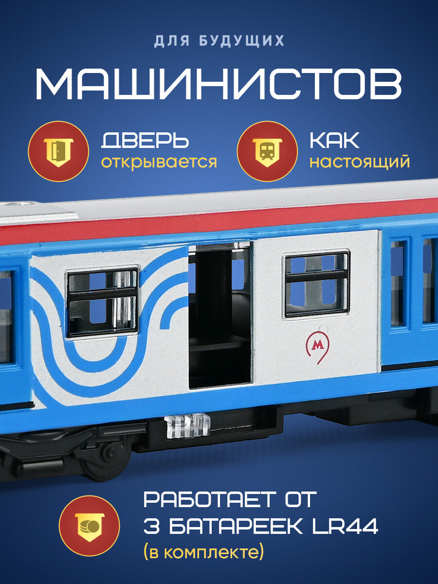 Игрушка для мальчика вагон метро Технопарк детская модель металлическая коллекционная инерционная с открывающимися дверьми 18,5 см