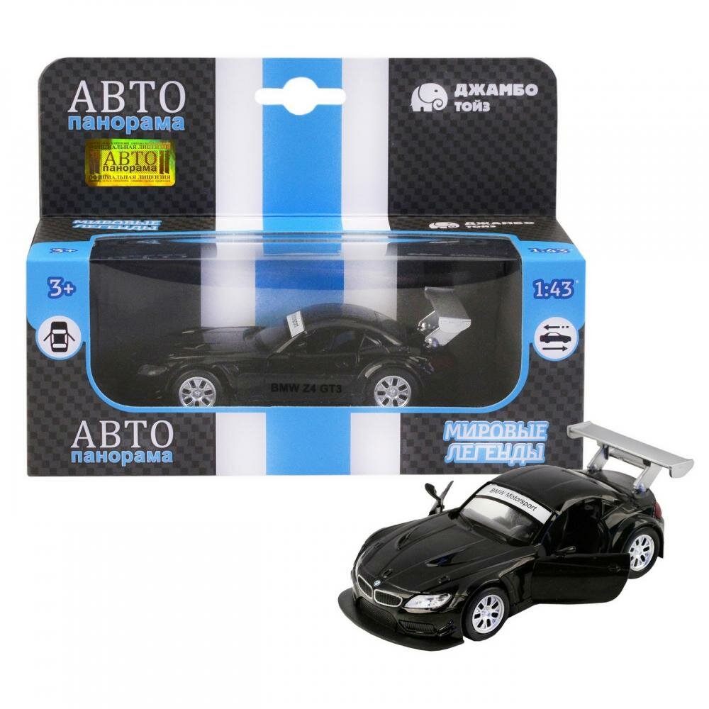 Купить Машина "АВТОПАНОРАМА" BMW Z4 GT3, 1/38, черный, инерция, откр. двери, в/к 17,5*12,5*6,5 см, JB1200132