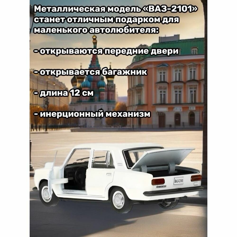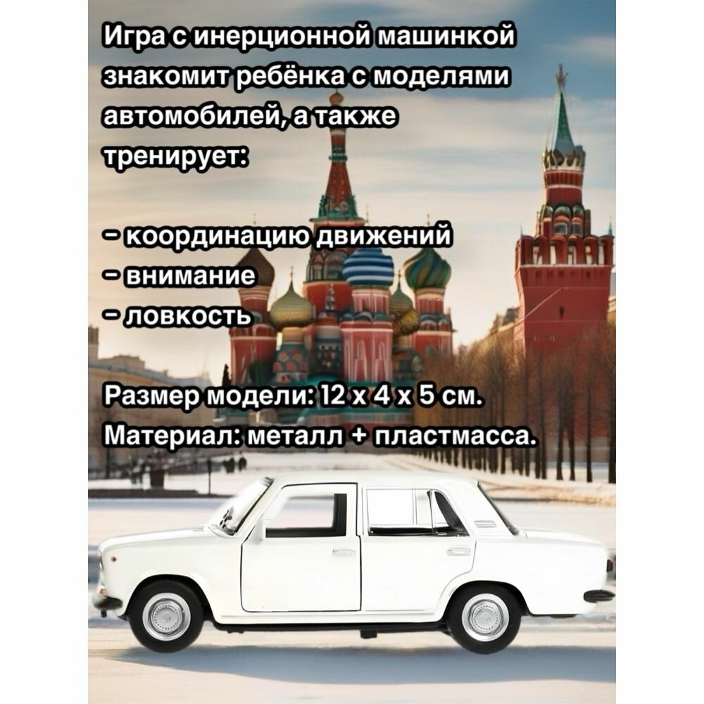 Модель ваз 2101 жигули "Белый" инерционная, металл. (12 см) двери, багаж открываются