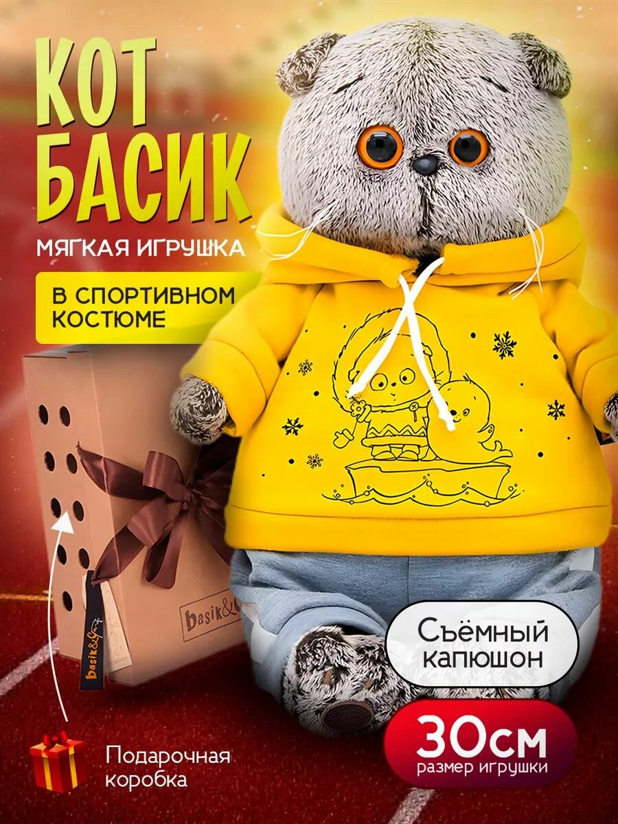 СохранитьМягкая игрушка Basik&Co Кот Басик в спортивном костюме, 30 см, BUDIBASA интересное: