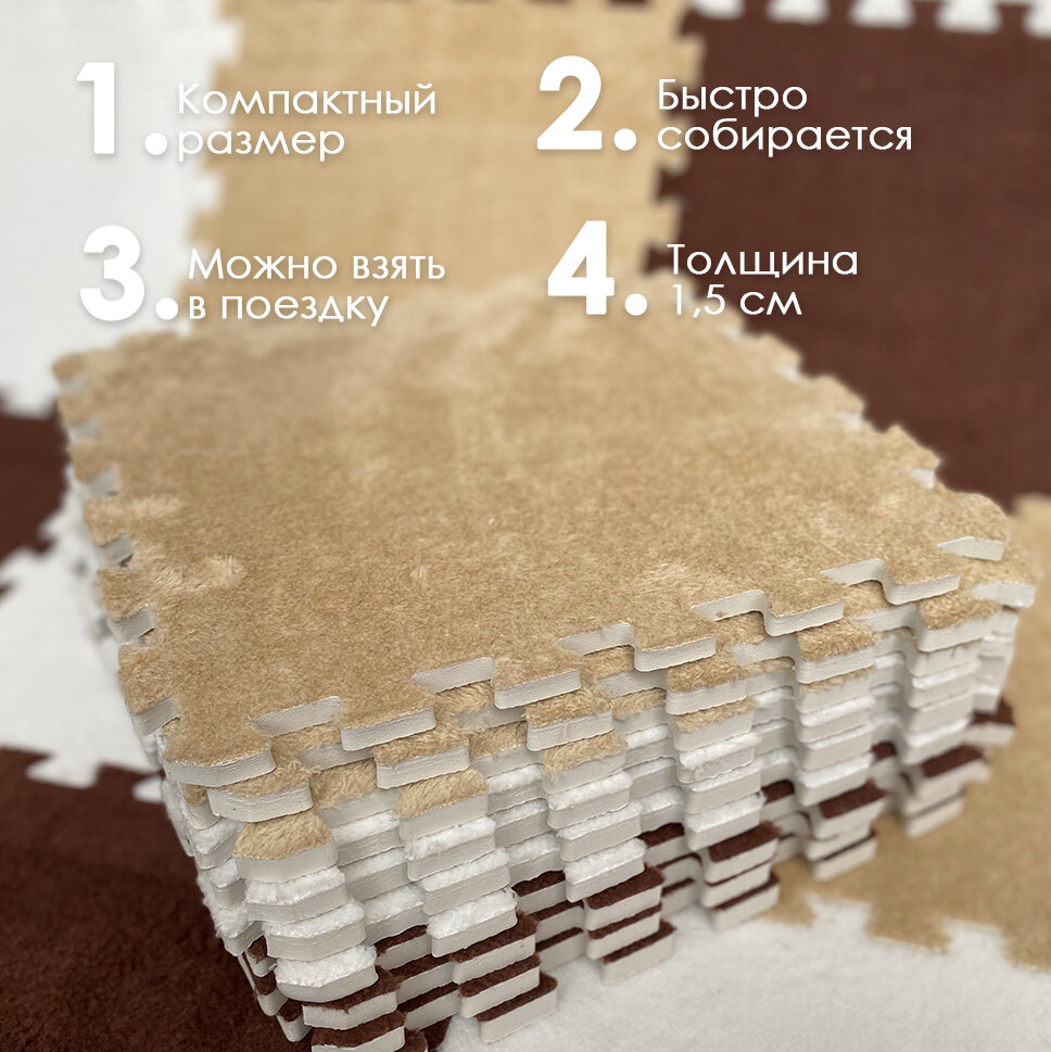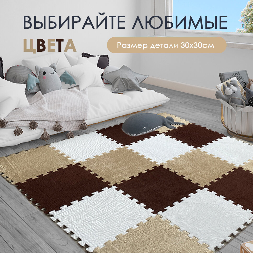 Купить Коврик-пазл Baizheng махровый, упаковка 10 штук, размер 30х30х1,5см, цвет бежевый