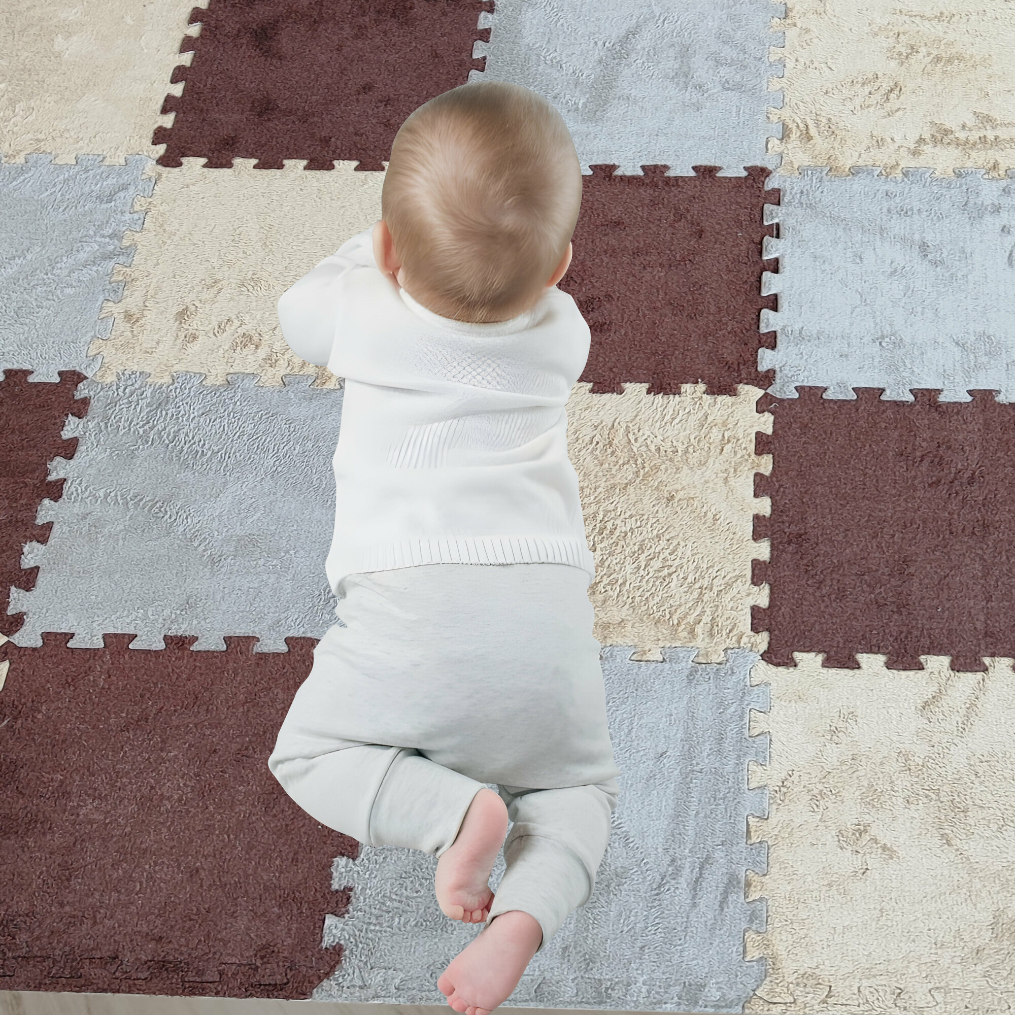 Коврик-пазл Baizheng махровый, упаковка 10 штук, размер 30х30х1,5см, цвет коричневый