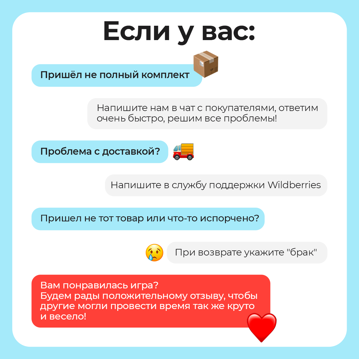 | Тип игры | ассоциативная / викторина / для вечеринки / карточная / квест / кооперативная / логическая / психологическая / развивающая / ролевая / семейная / стратегическая |
