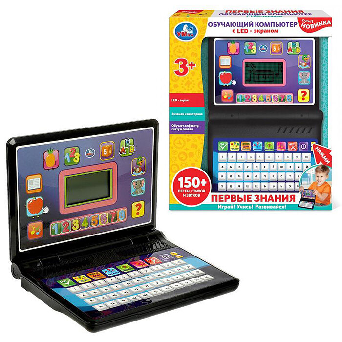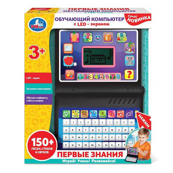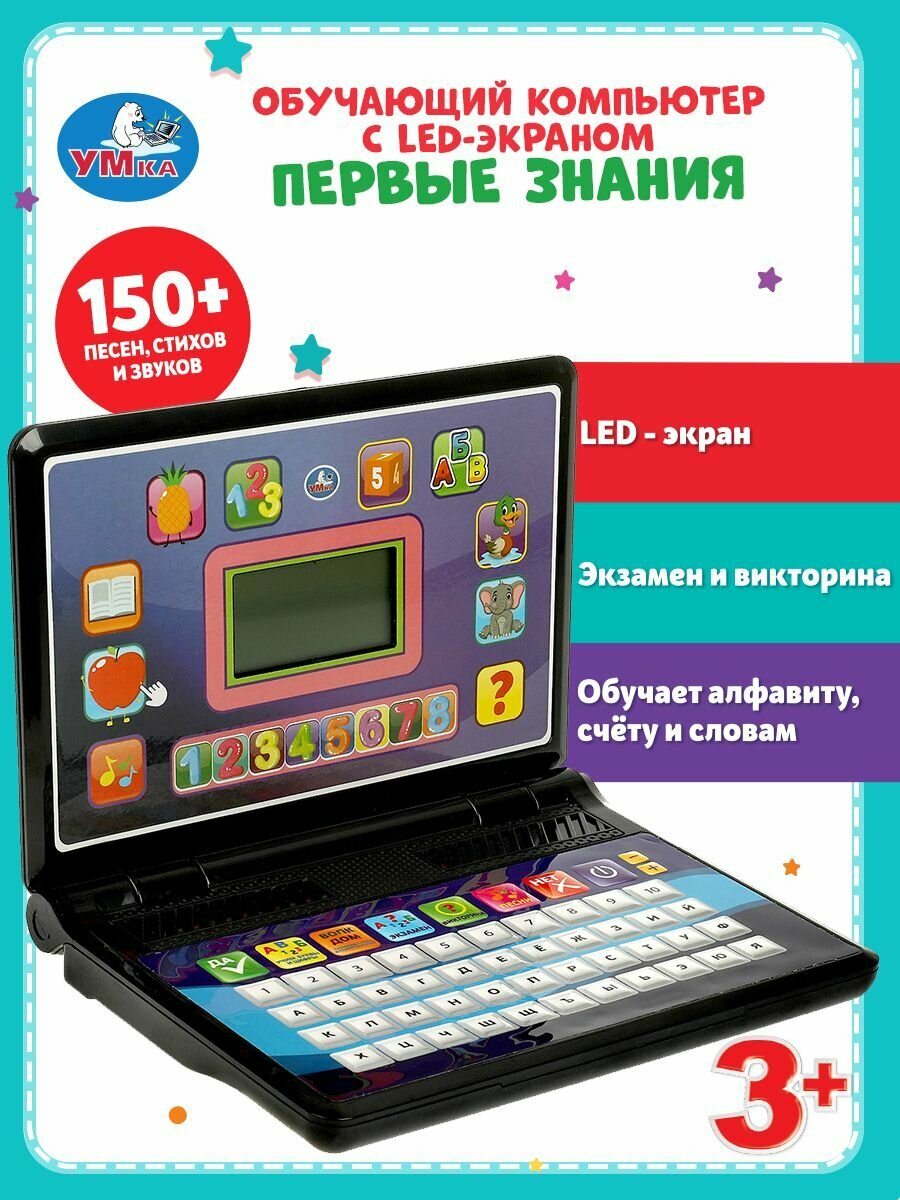 Умка Обучающий компьютер Первые знания (150 песен,стихов и звуков, led-экран, в коробке, от 3 лет) HT955-R2, (Huada Toy Co.,Ltd)