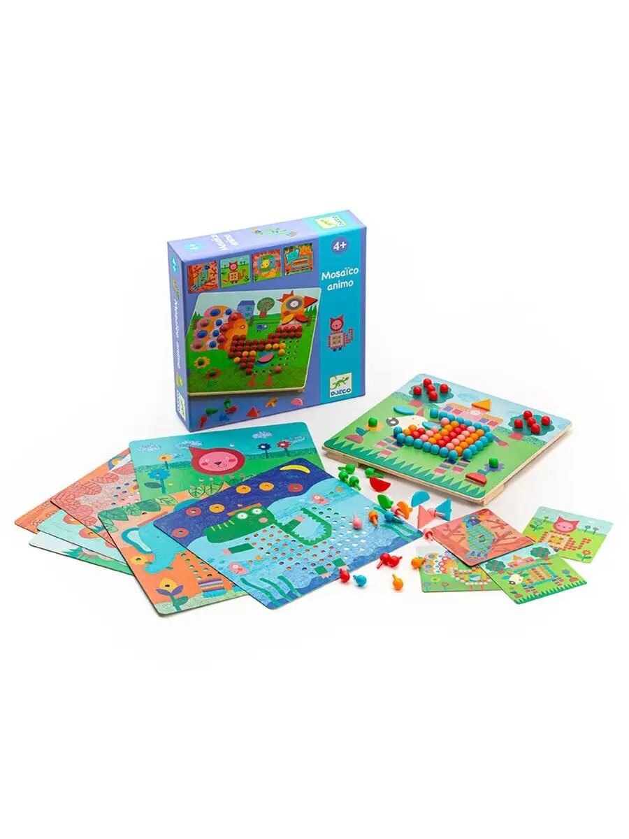 Djeco Мозаика гвоздики "Животные", развивающая игра для детей от 4 лет