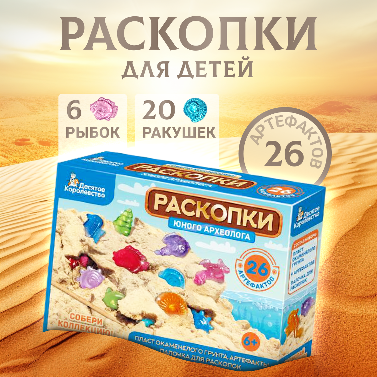 Набор для иследований Раскопки Юного археолога 26 артефактов - Десятое королевство интересное: