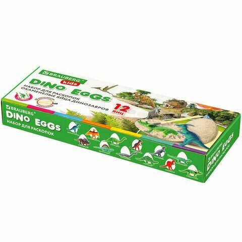 Набор для раскопок Brauberg развивающий, 12 видов динозавров, карточки, инструменты, Kids