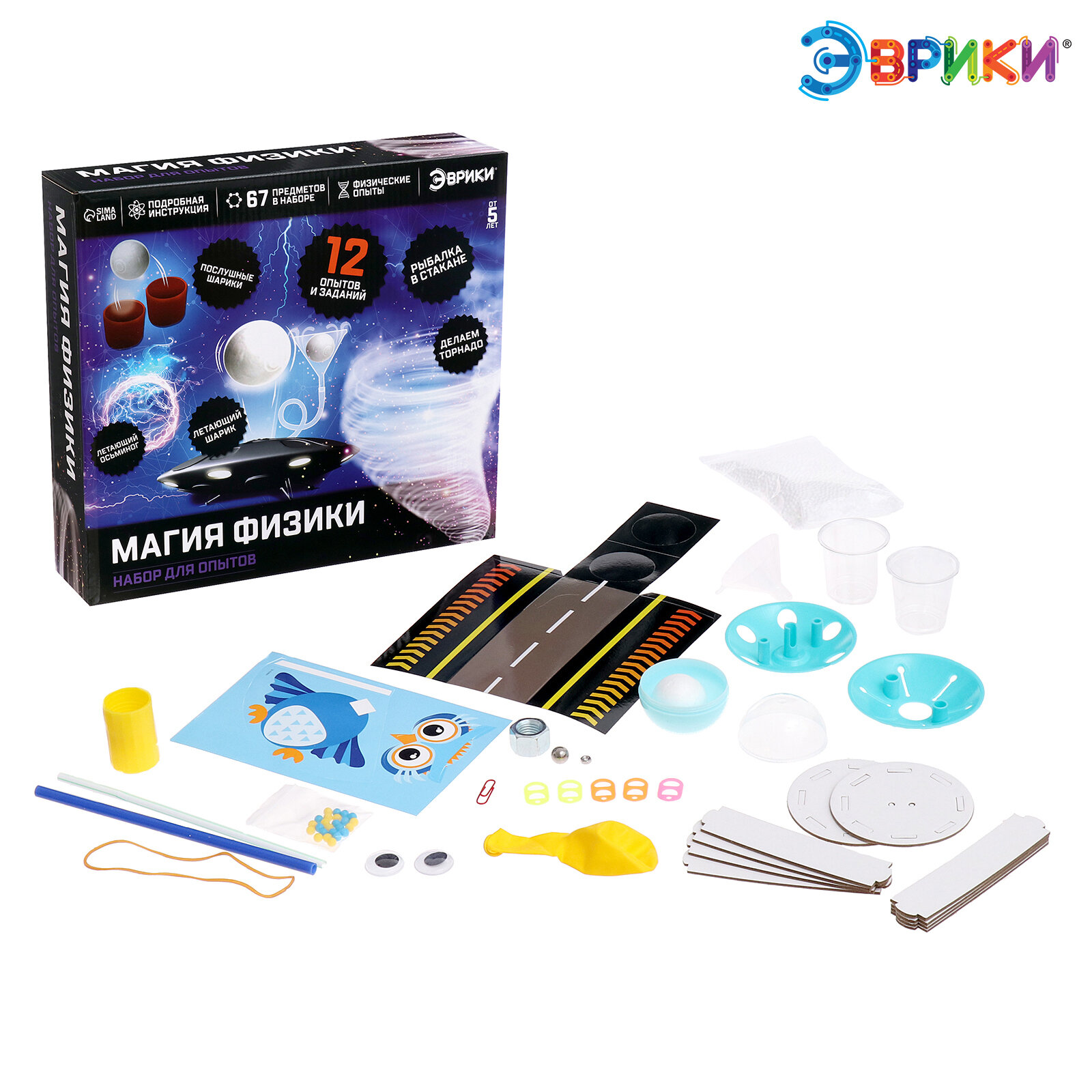 Купить Большой набор для проведения опытов "Магия физики", 12 заданий, в комплекте 67 предметов и инструкция, домашние эксперименты для детей