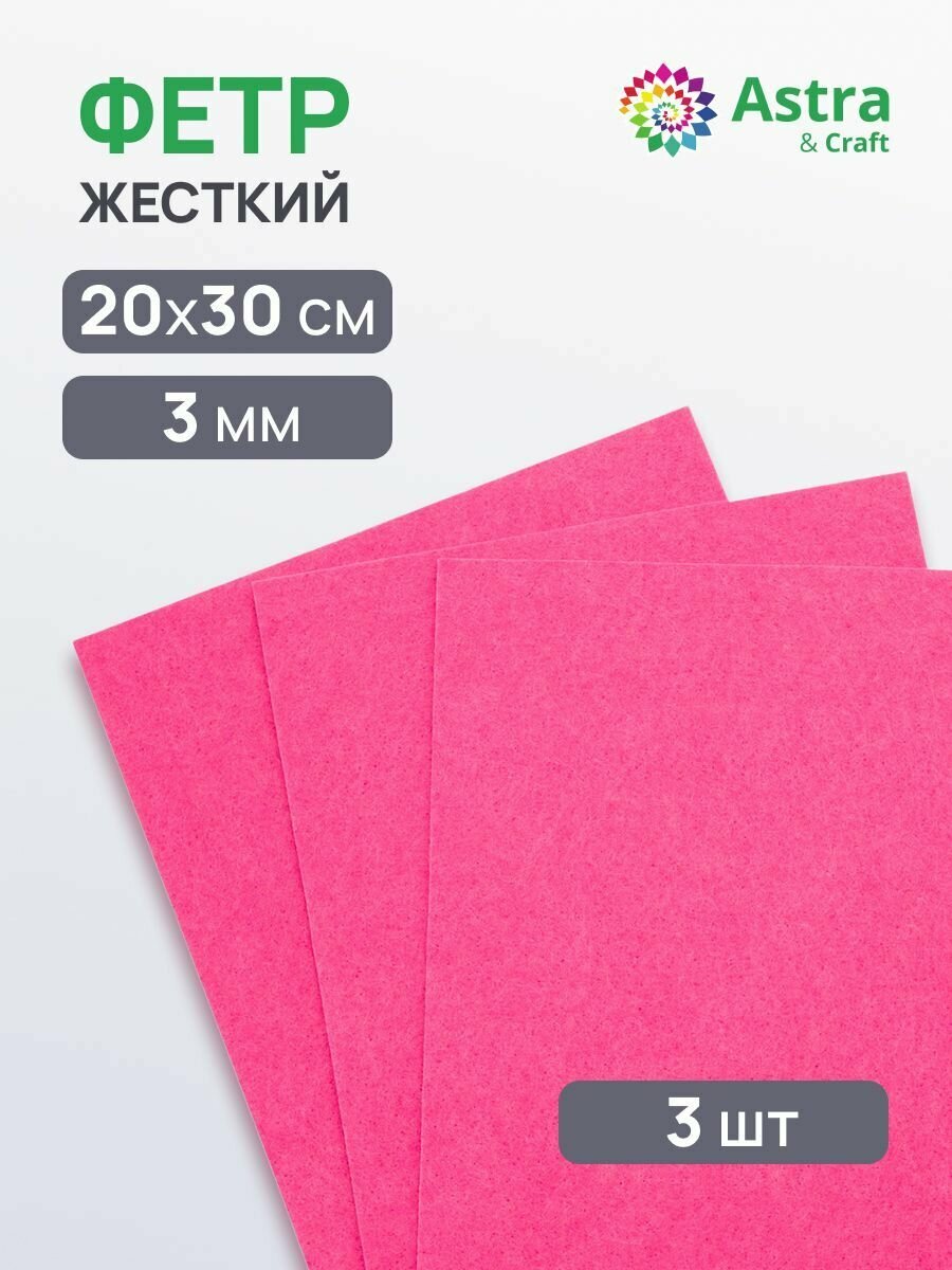 Купить Фетр жесткий листовой Astra&Craft, 3 мм, 20х30 см, 3 шт (AF814 ярко-розовый)