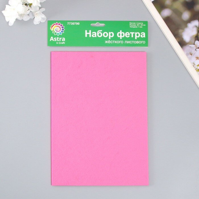 Фетр Astra&Craft Листовой, жесткий, 1 мм, 160 г, 20х30 см, цвет AF813/YF613, розовый, 3 шт