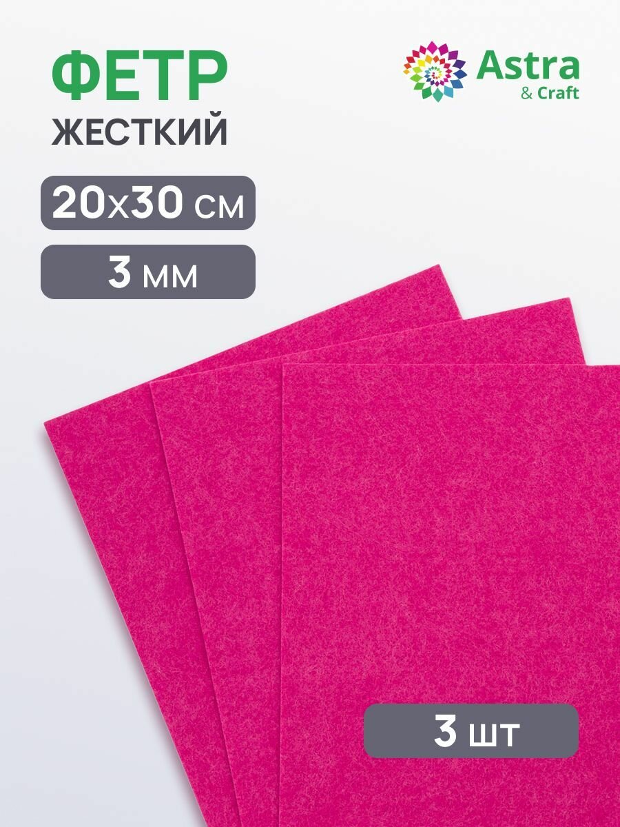 Фетр жесткий листовой Astra&Craft, 3 мм, 20х30 см, 3 шт (AF809 фуксия)