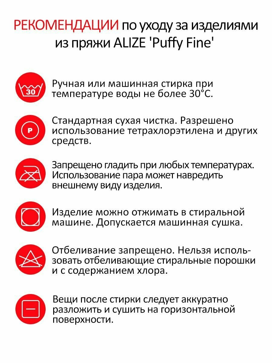 Пряжа Alize Puffy fine красный (56), 100%микрополиэстер, 14.5м, 100г, 5шт