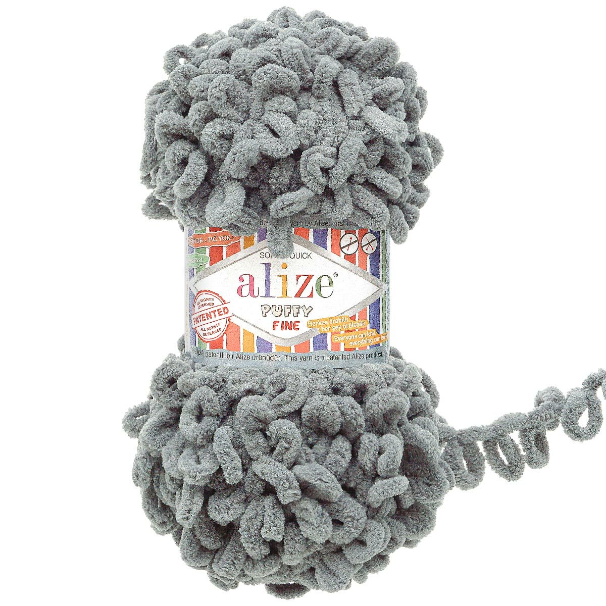 Купить Пряжа для вязания руками с готовыми петлями ALIZE 'Puffy Fine' 100г, 14,5м (87 серо-голубой), 5 мотков