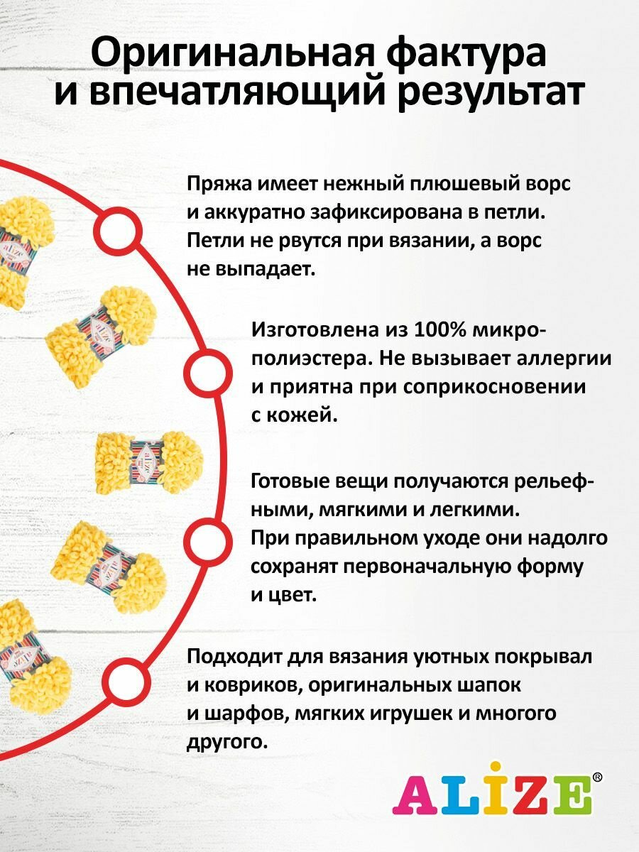 СохранитьПряжа для вязания руками с готовыми петлями ALIZE 'Puffy Fine' 100г, 14,5м (113 желтый), 5 мотков интересное: