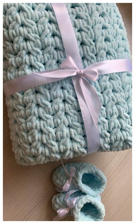| Дополнительная информация | высота петли 2 см; в 1 метре пряжи примерно 70 петелек; сколько мотков пряжи Pyffy Fine нужно на плед: плед 1 м x1 м — 5 мотков; плед 1,5 м x1,5 м — 11 мотков; плед 1,5 м x 2 м — 15 мотков; плед 2 м x 2 м — 20 мотков |