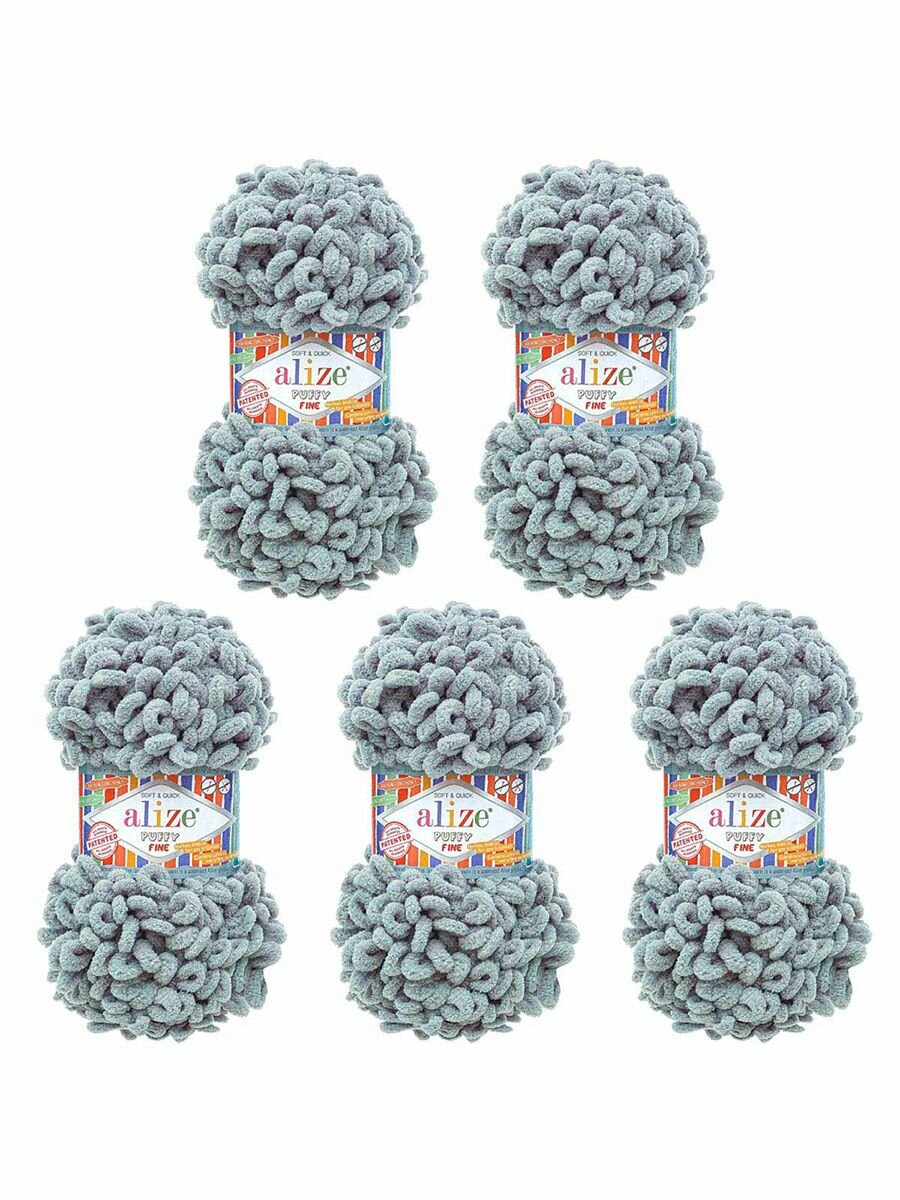 Пряжа ALIZE "Puffy Fine", 100 г 14,5 м, 100% микрополиэстер, 87 серо-голубой, 5 шт