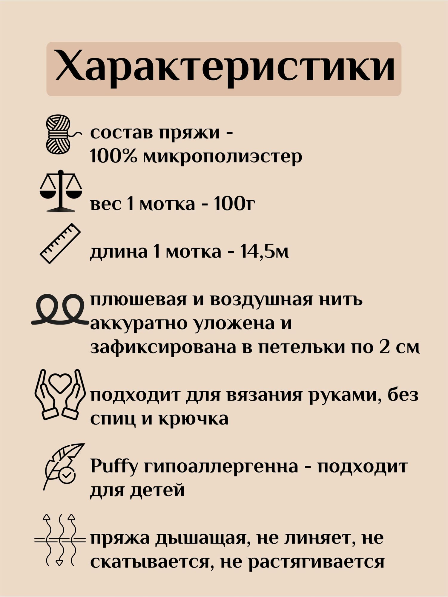| Особенности пряжи | вязание руками / плюшевая / с готовыми петлями / с разной толщиной нити / синель |