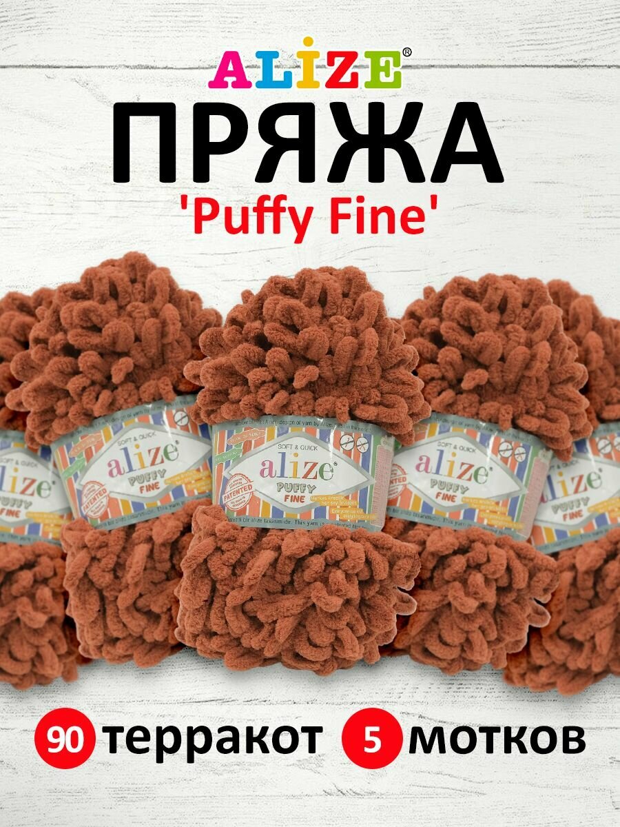 Пряжа Alize Puffy fine терракот (90), 100%микрополиэстер, 14.5м, 100г, 1шт