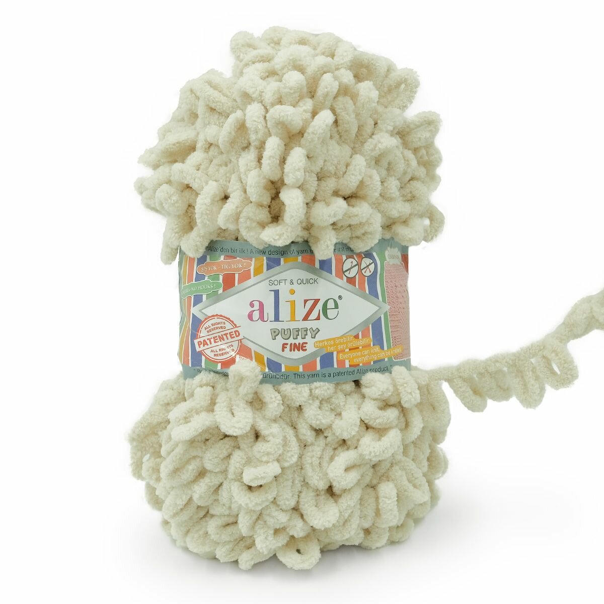 Пряжа Alize Puffy Fine -1 шт, 599 слоновая кость, 14 м/100 г, маленькие петли (2 см) /Ализе Пуффи файн/