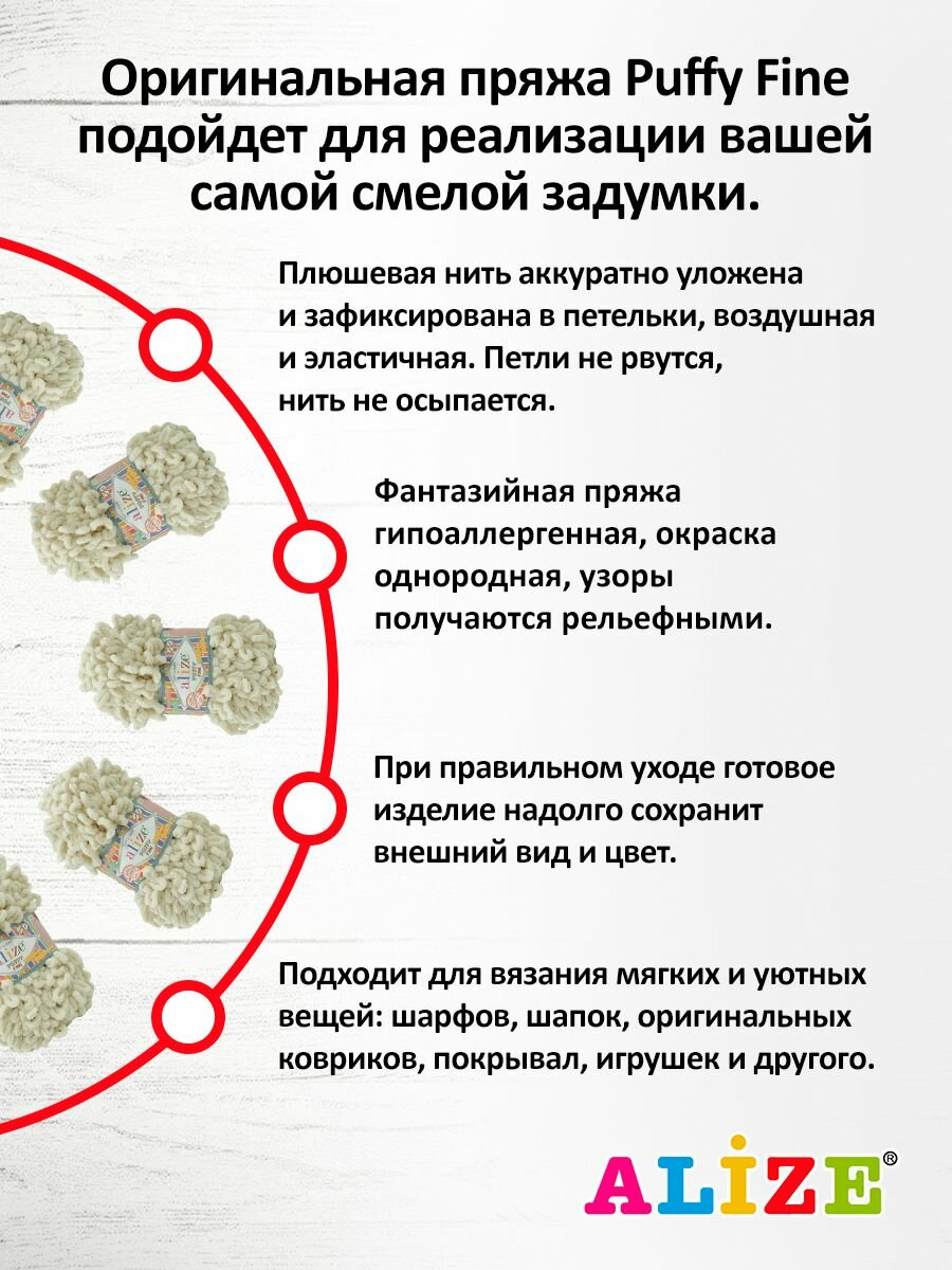 СохранитьПряжа для вязания руками с готовыми петлями ALIZE 'Puffy Fine' 100г, 14,5м (599 слоновая кость), 5 мотков интересное: