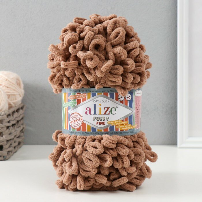 Пряжа для вязания руками с готовыми петлями ALIZE 'Puffy Fine' 100г, 14,5м (261 светло-коричневый), 5 мотков
